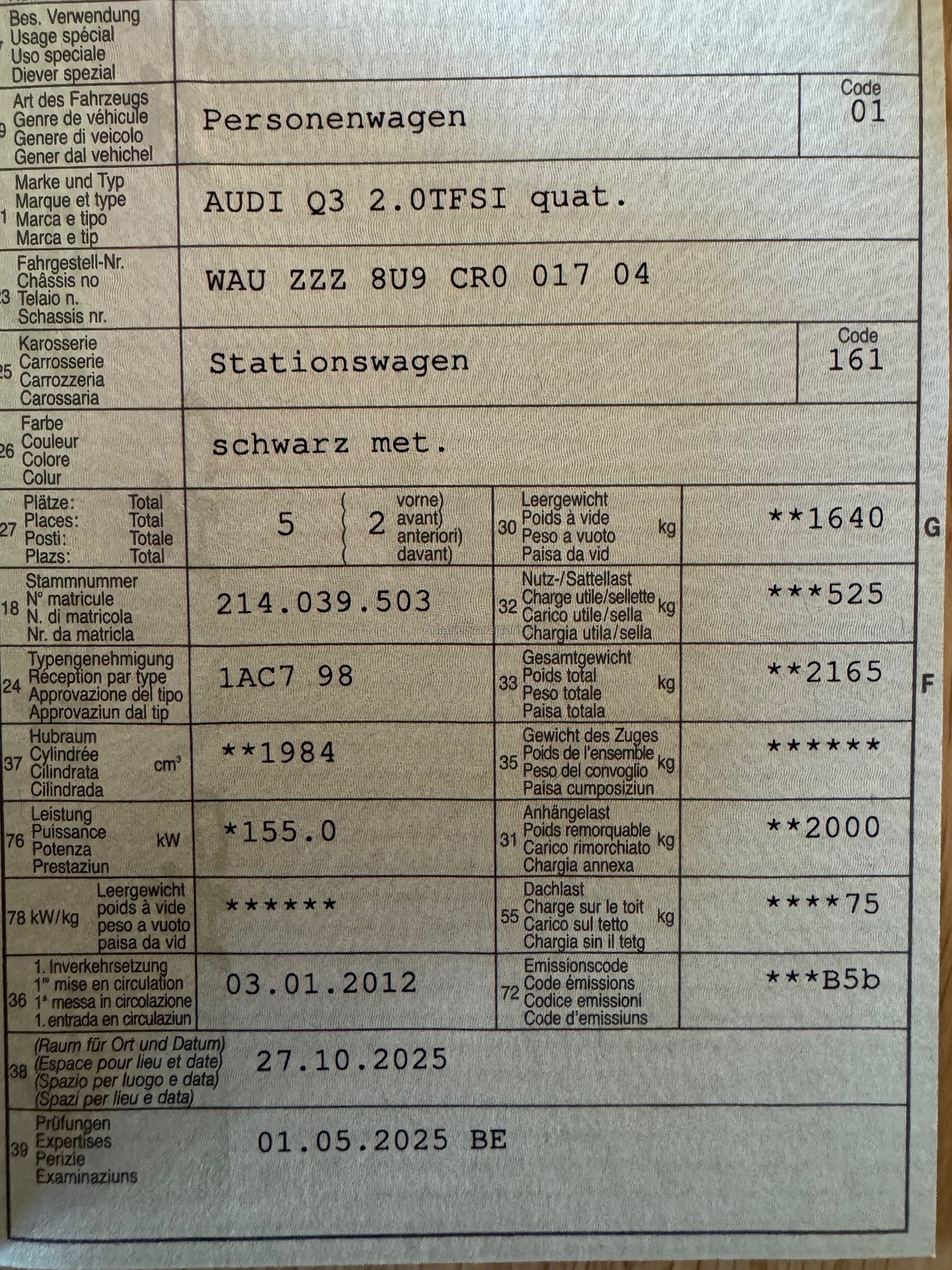 | VIN | WAUXXX |