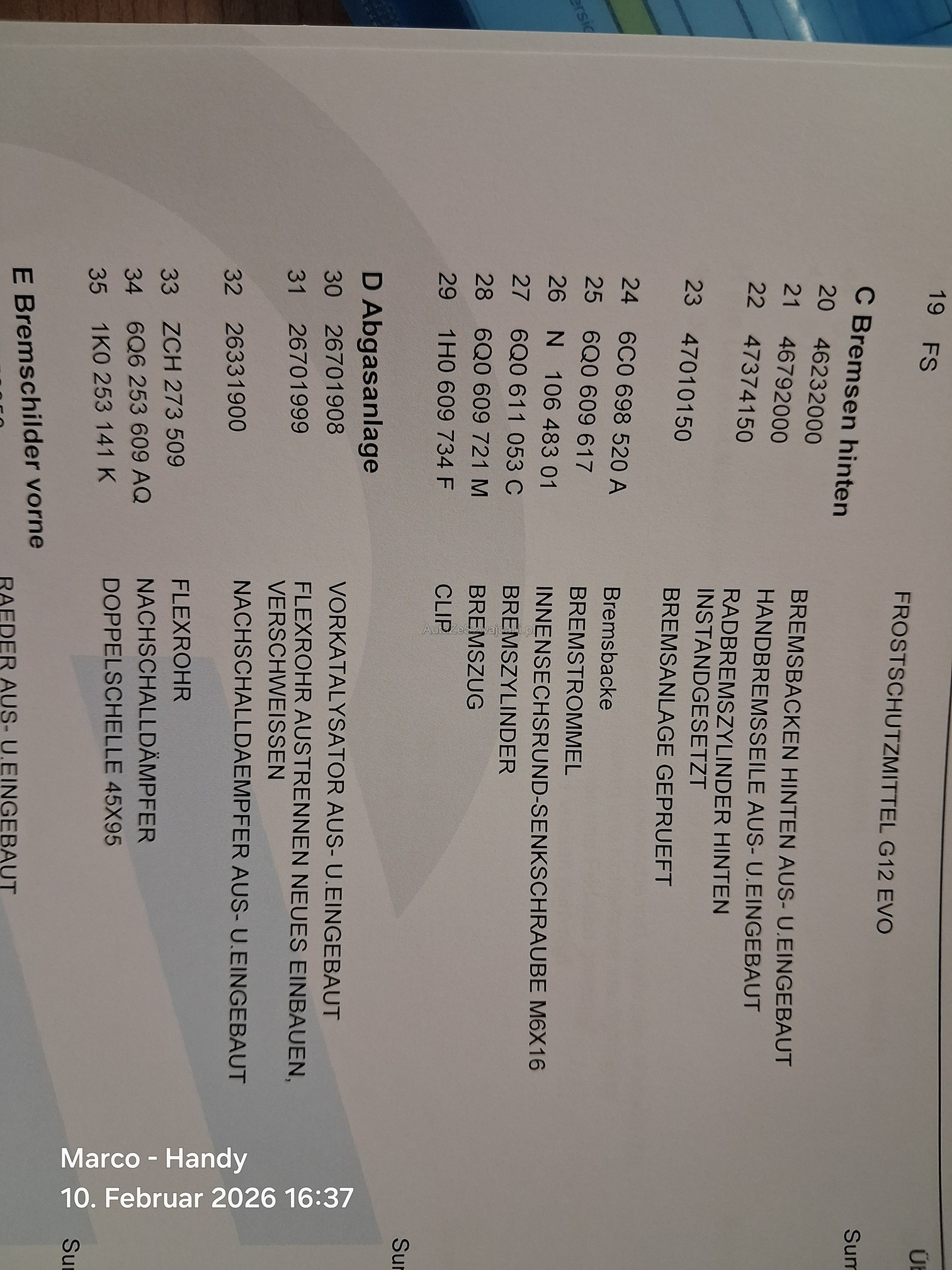 | Rost am Fahrzeug | Yes |