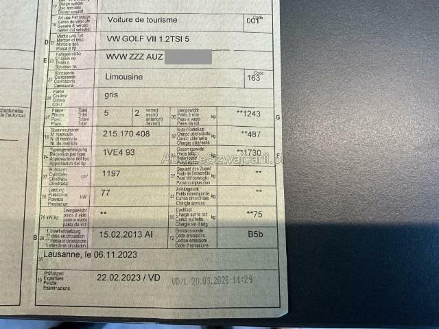 | VIN | WVWZZZAUZDP****** |