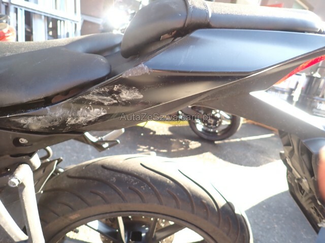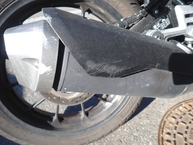 | Condition_and_Equipment | Links Linke Seite beschädigt. Verschalung oben links verkratzt. Verschalung unten links verkratzt. Rechts Rechte Seite beschädigt. Front Lenker verbogen. Heck Auspufftopf nur verkratzt. Schwinge hinten beschädigt. Verschalung hinten verkratzt. Rahmen Rahmen nur verkratzt. --- Serienaustattung Garantie 5 Jahre |
