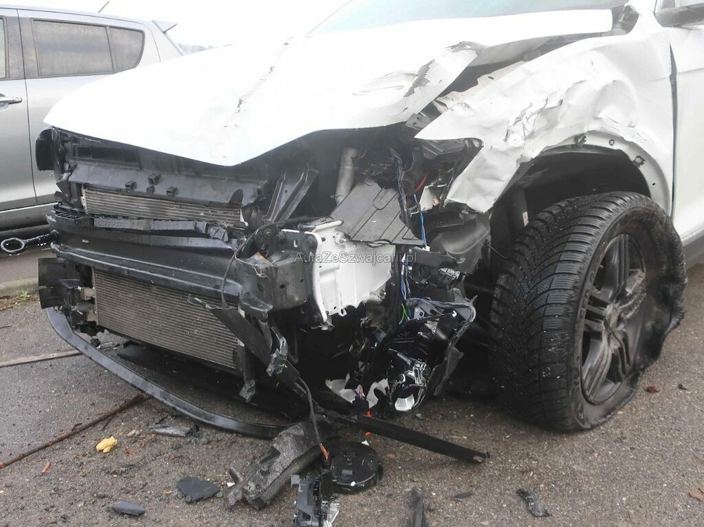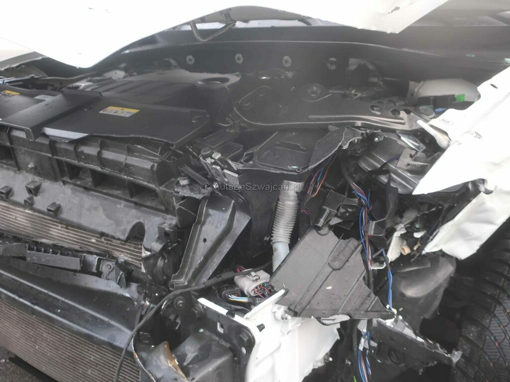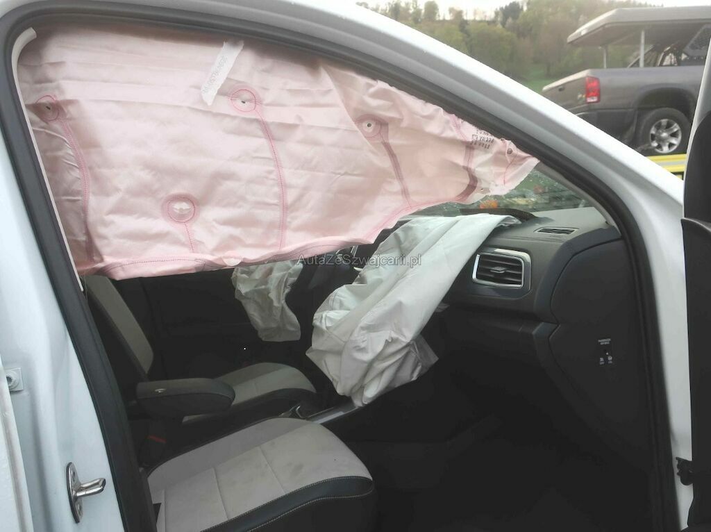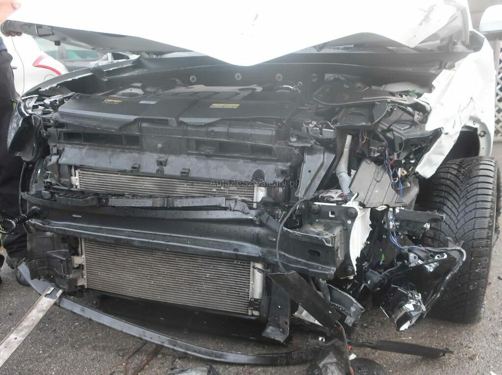 Toute la partie frontale, le train avant gauche et la porte avant droite sont endommagés. Les airbags frontaux et latéraux sont déployés.