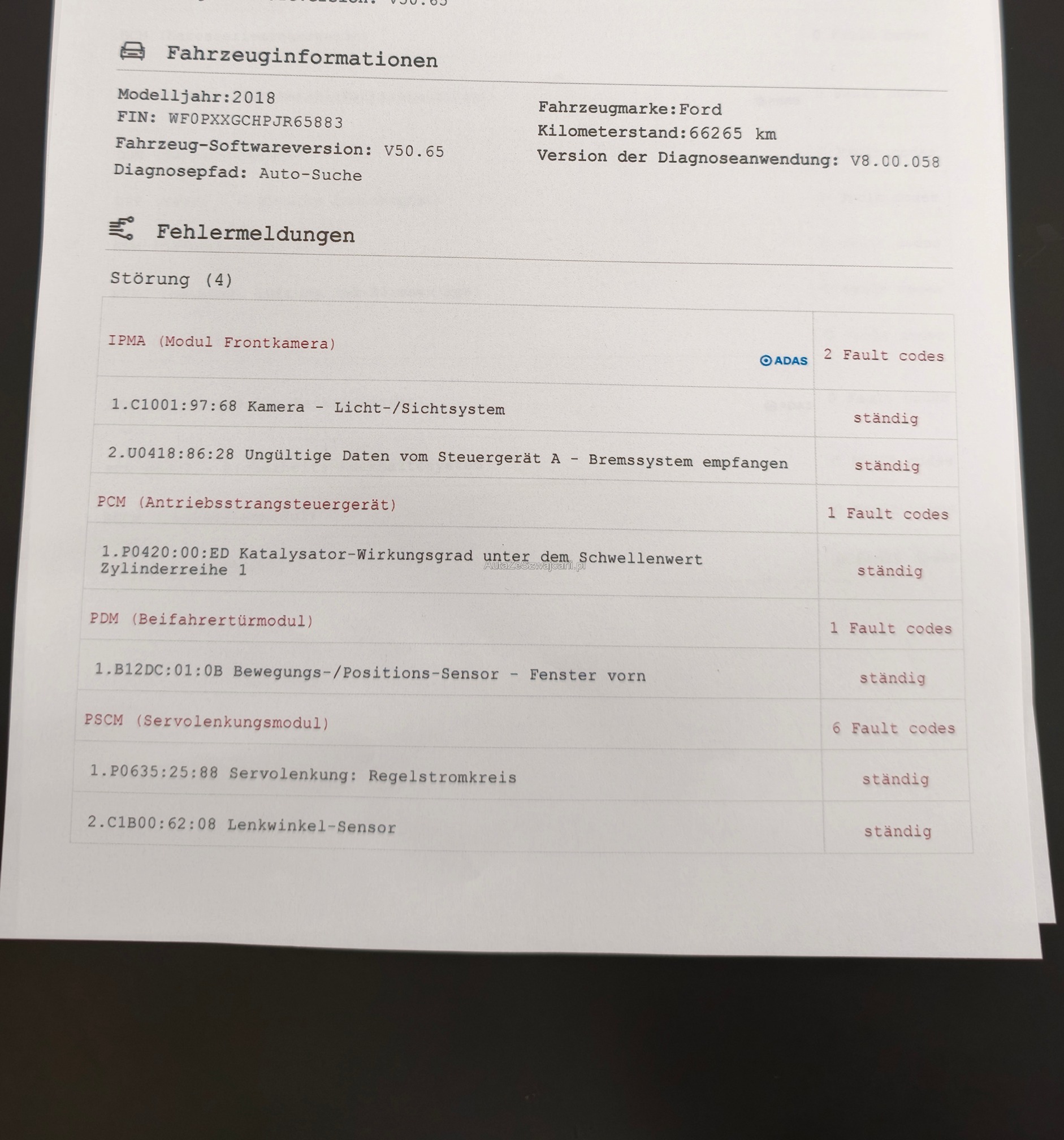 | Kommentar | Das Fahrzeug hat diverse Kratzer / Beulen / Schäden (siehe Foto) Motorlampe leuchtet (siehe Fehlerliste) Fahrbar --> Motor läuft , Getriebe schaltet. |