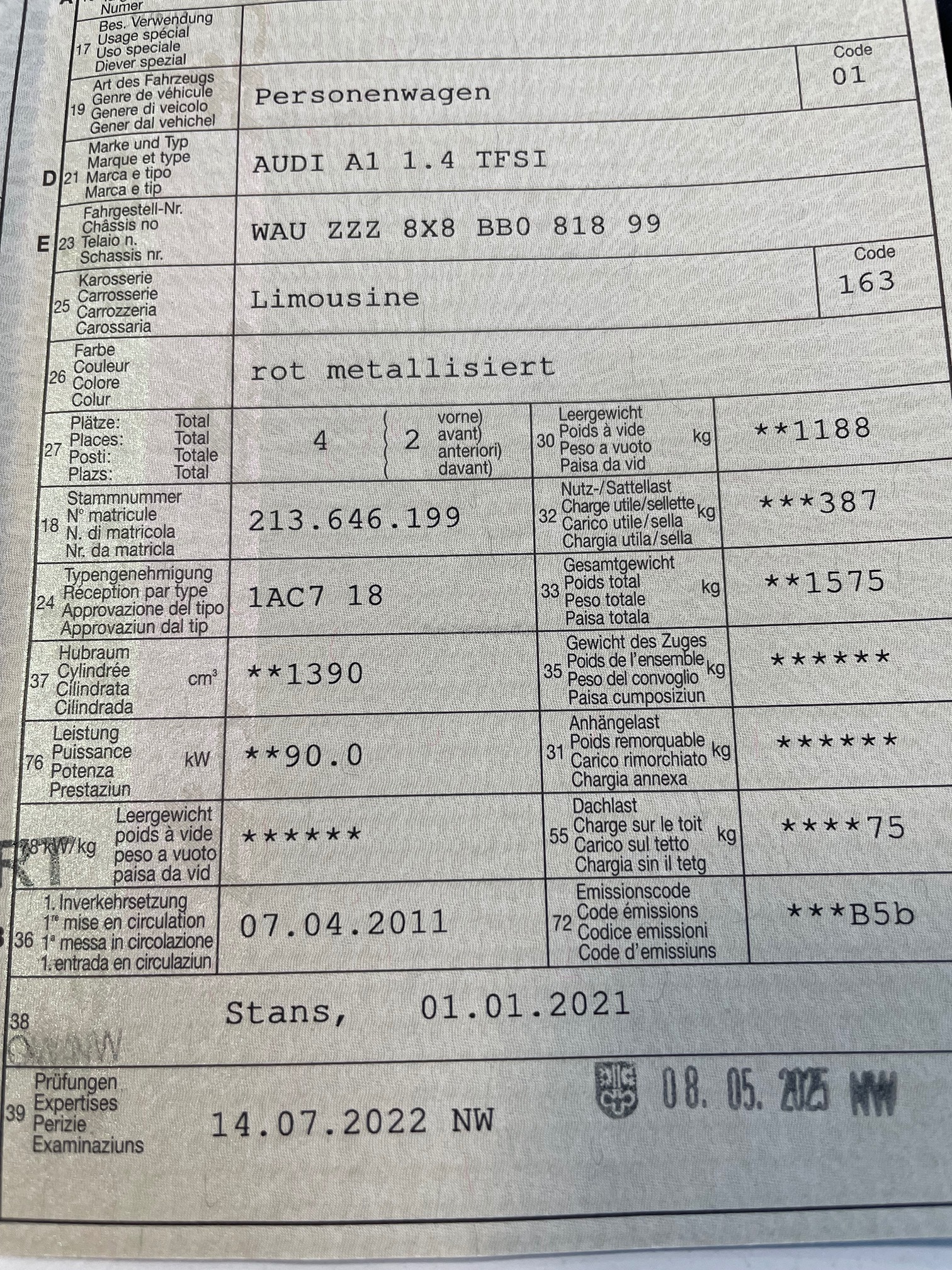 | VIN | WAUXXX |