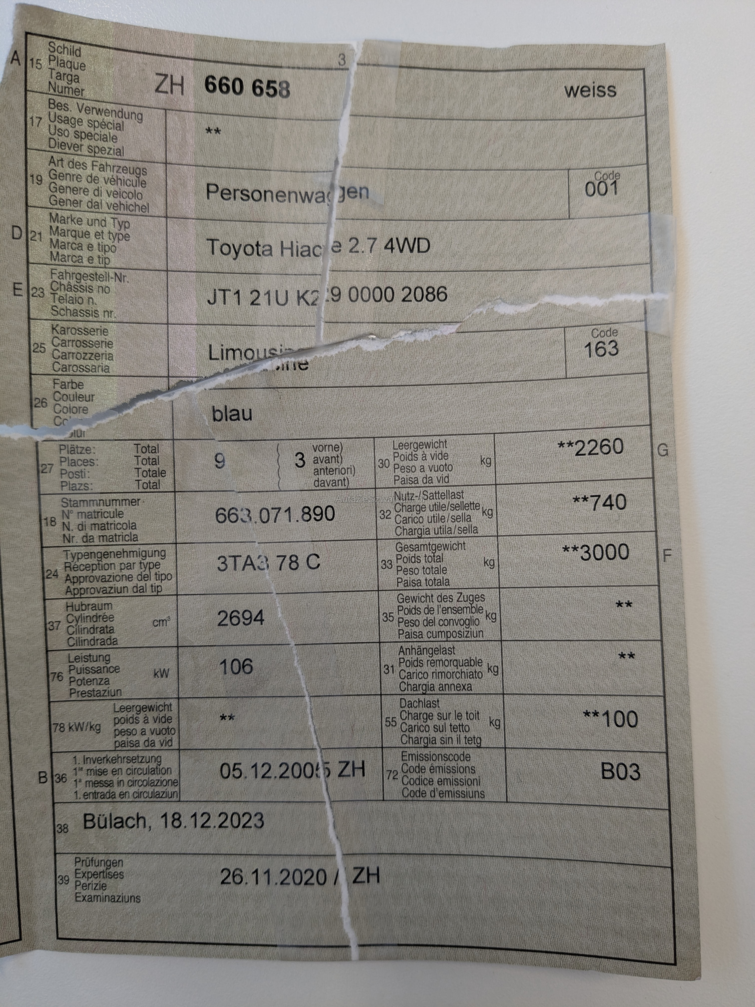 | Kommentar | Sehr gepflegtes Fahrzeug, eine Delle hinten rechts, diverse Kratzer, frisch ab MFK, 3 Plätze für Rollstuhl bewilligt |