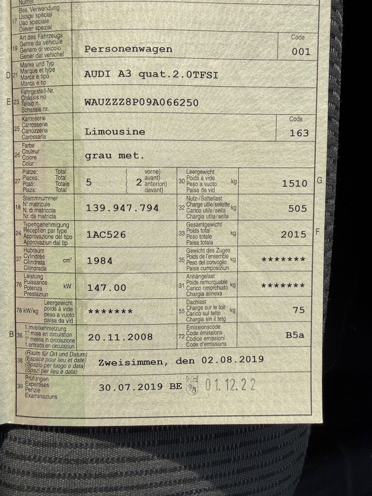 | Typ | A3 Sportback Quattro 2.0 TFSI |