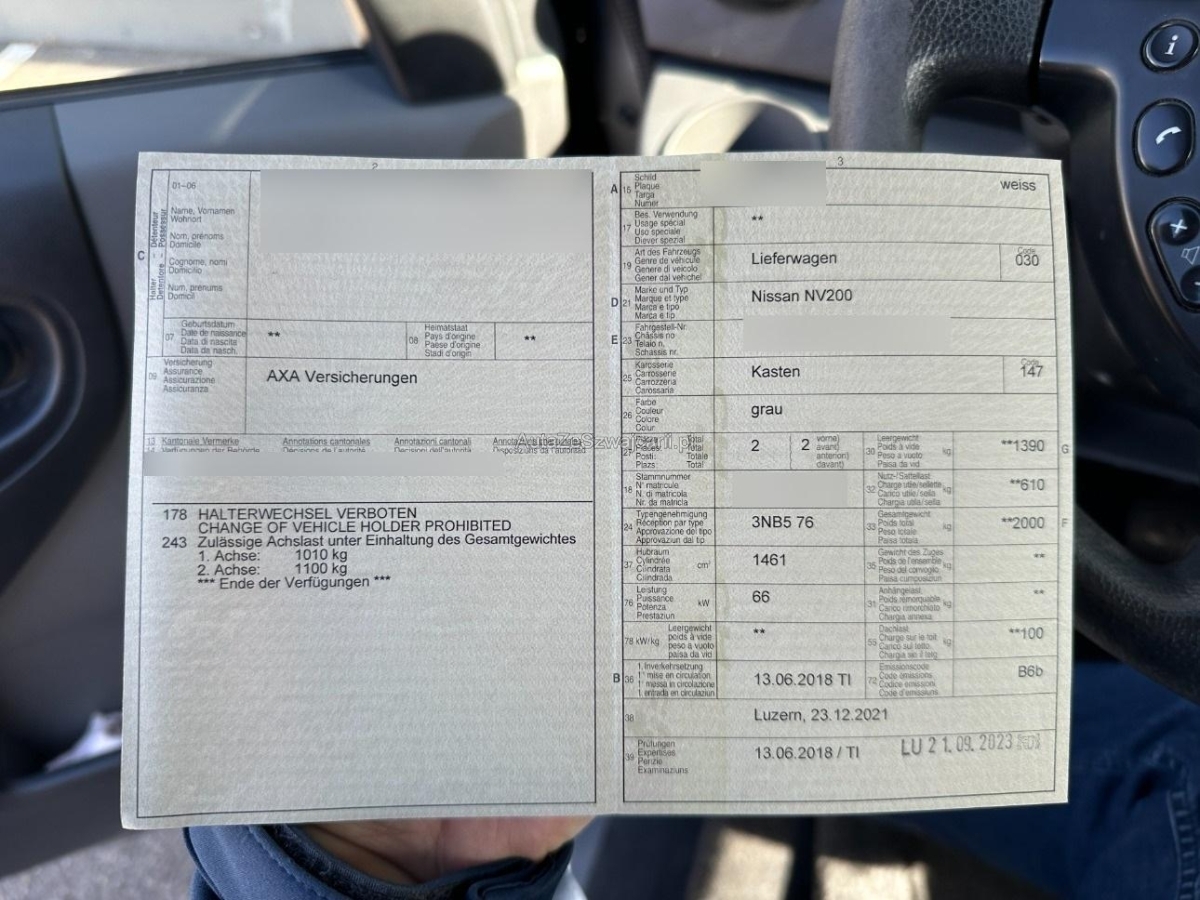 | Fahrzeugausweis | Vorhanden |