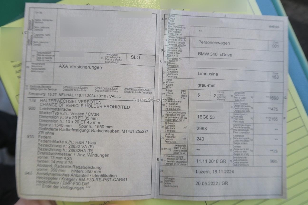| Fahrzeugausweis | Vorhanden |