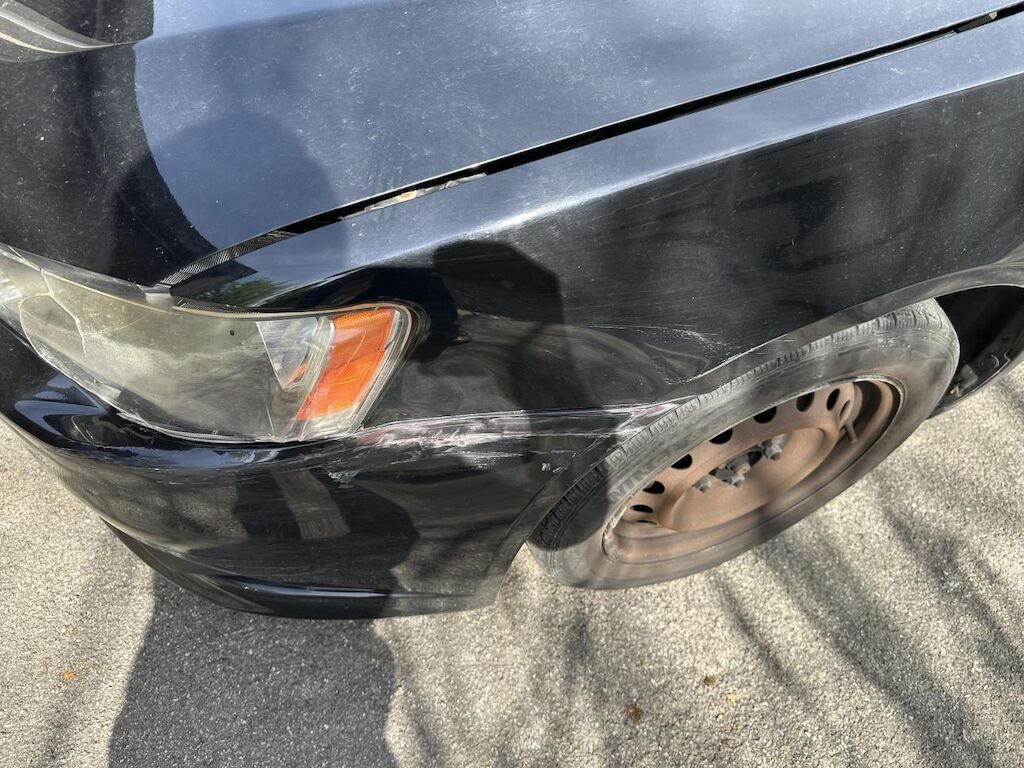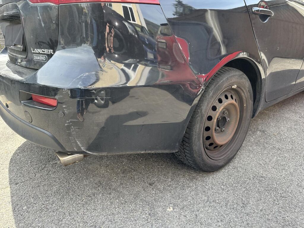 Das Fahrzeug hat diverse Dellen und Lackschäden.