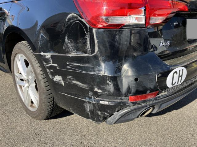 | Condition_and_Equipment | Zustand Fahrzeug ist fahrbar. Bereifung Fahrzeug wird mit Winterräder abgegeben. Sonstiges Fahrzeugdokumente vorhanden. Schlüssel Nur ein Schlüssel vorhanden. --- Links Linke Seite beschädigt. Heck Heck links eingedrückt. Seitenwand hinten links eingedrückt/ausgestaucht. Heckblech eingedrückt. Elektrik Risiko Scheinwerfer. Weitere Beschädigungen Endschalldämpfer evt. deformiert. Stossfänger vorne verkratzt. Leichte Kratzer um das Fahrzeug. Seitenscheibe hinten rechts Folie löst sich. Heckleuchte gerissen. --- Serienaustattung Deaktivierung Beifahrerairbag/ Isofix Kindersitzverank. V+H Aussenspiegel elektrisch verstellbar und heizbar Airbag Fahrer und Beifahrerseite Seitenairbag Fahrer und Beifahrerseite Servotronic Seitliches Kopfairbagsystem SIDEGUARD Radschrauben mit Diebstahlsicherung Dachreling schwarz Reifendruck-Kontrollsystem RDK Xenon-Plus Scheinwerfer ABS und EBV Elektr. Bremskraftverteilung ESP Elektronisches Stabilitätsprogramm Netztrennwand Dieselpartikelfilter DPF Radioempfang digital DAB Klimaautomat Fahrerinformationssystem Fussmatten vorn und hinten Multifunktions-Ledersportlenkrad Licht- und Regensensor Rücksitzlehne geteilt umklappbar Audi drive select (Fahrzeugcharakteristik) Gepäckraumklappe elektrisch öffnend und schliessend Bluetooth Schnittstelle Stop + Start System Keine Gewähr auf die Angaben der Serienausstattungen Gepäckraumabdeckung elektrisch MMI Radio plus Audi connect Notruf & Service Sonderausstattung Tempostat Dachreling blank Aussenspiegel elektrisch anklappbar Komfort-Mittelarmlehne vorne Pack Glanz Park-System plus vorne + hinten Klimaautomat plus 3-Zonen AdBlue Tank |