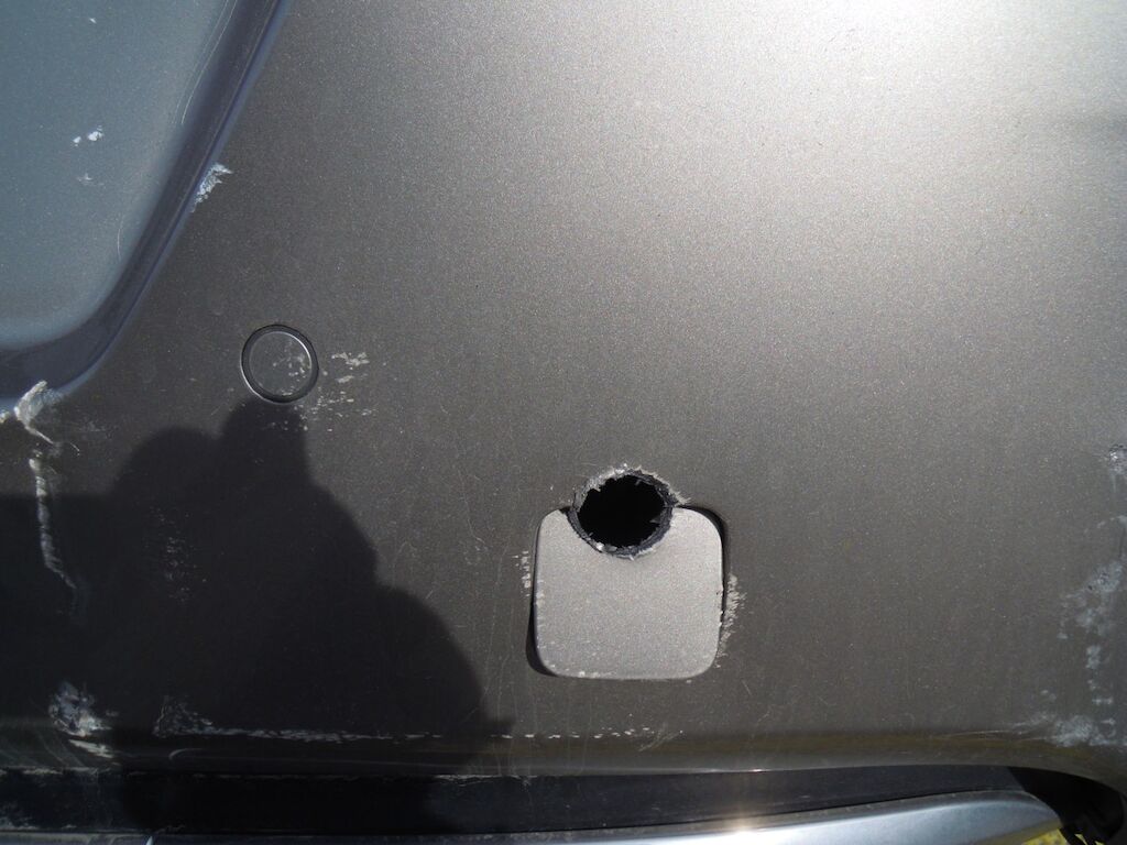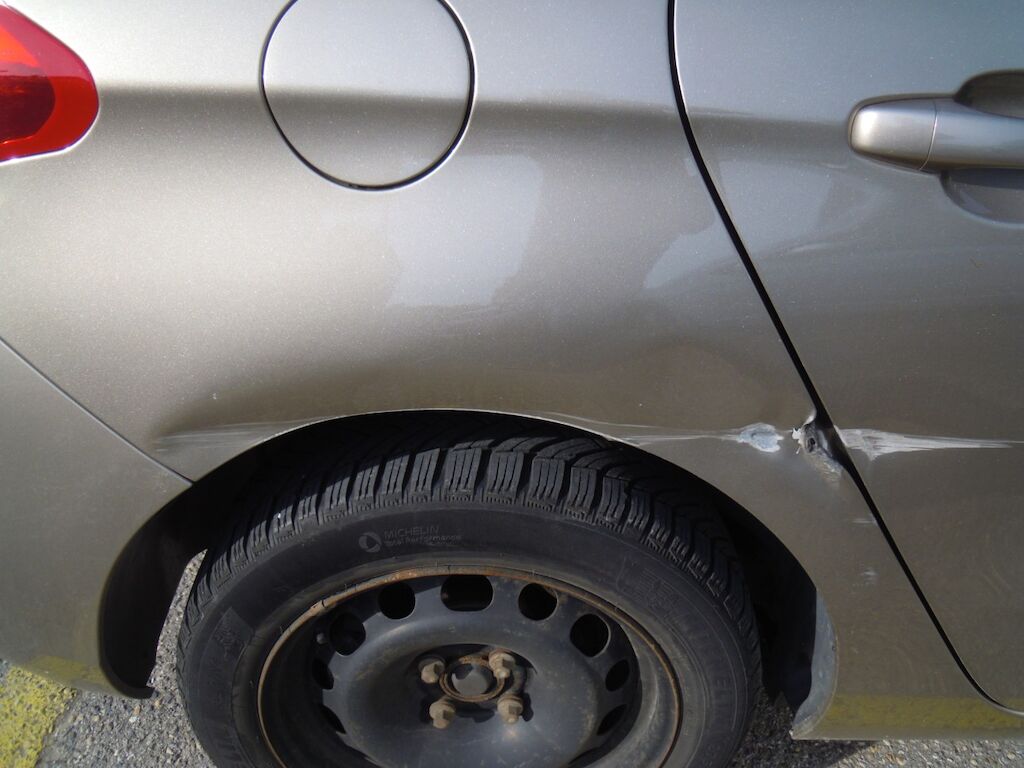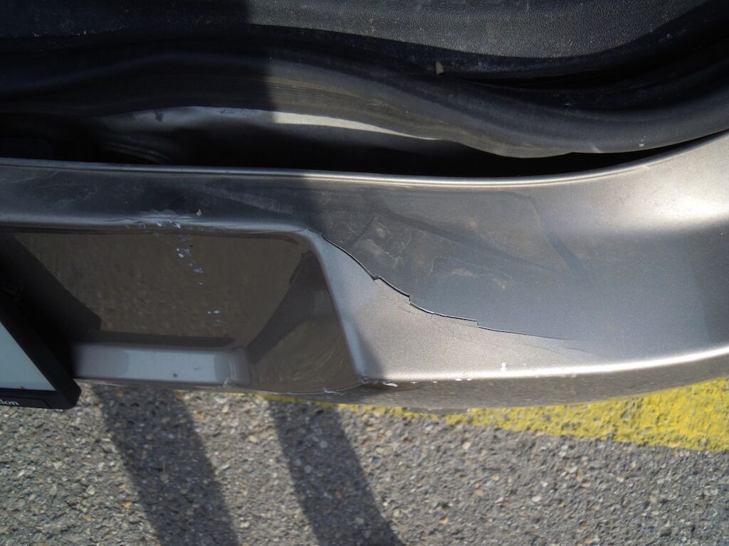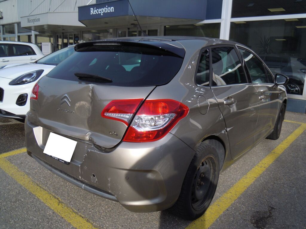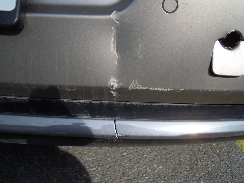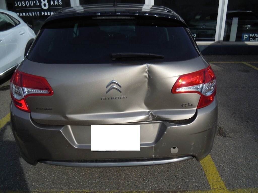 Dommage zone arrière: Hayon fortement déformé, feu intérieur droit, pare-chocs et moulure cassés, tôle de jupe, renfort et traverse enfoncés.