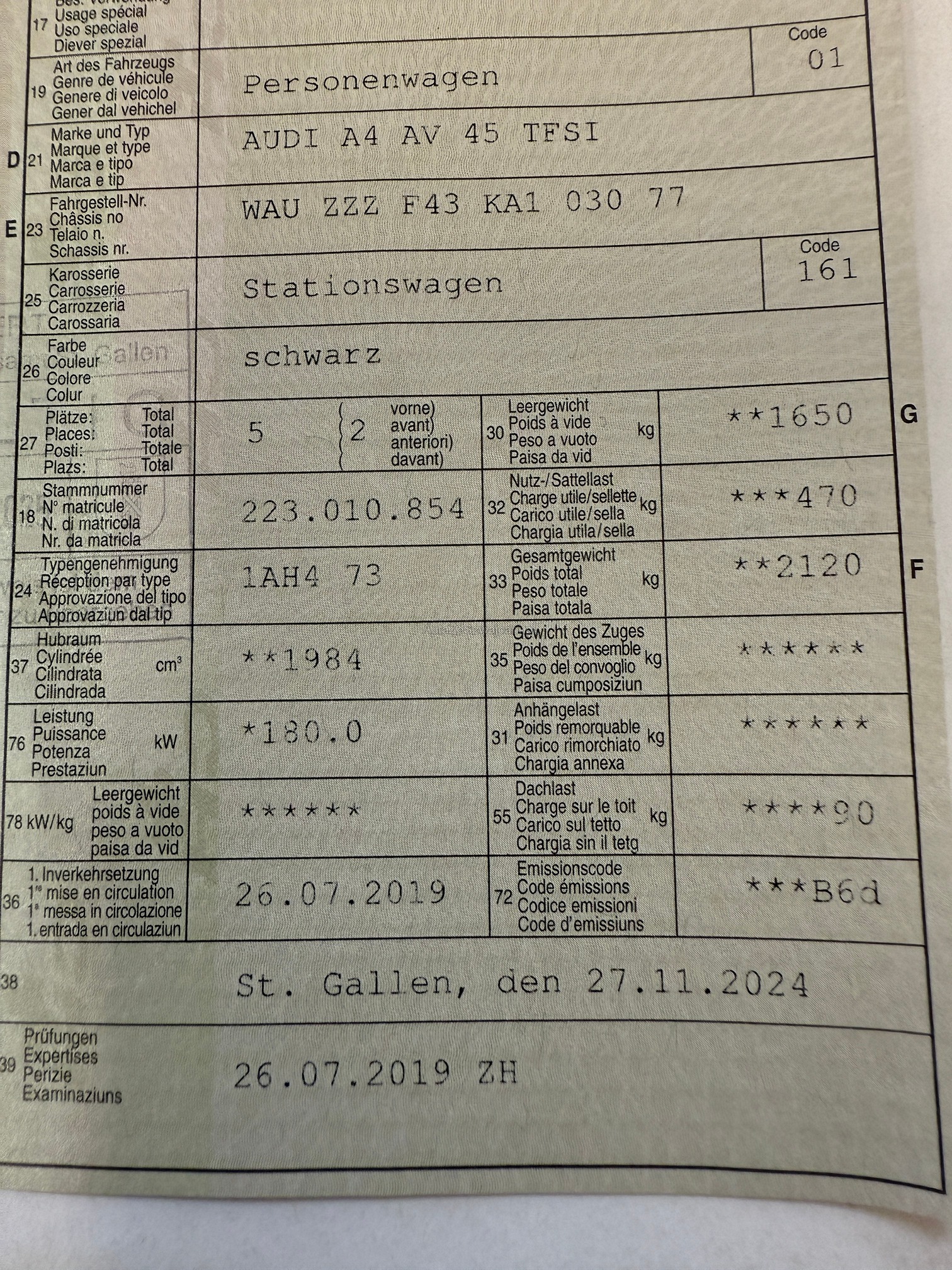 | Kommentar | Am Fahrzeug wurde kein Werkstatttest gemacht (für sichtbare oder nicht sichtbare Mängel wird nicht gehaftet) Wir haben nicht alle Funktionen vom Fahrzeug getestet und geprüft. Das Risiko liegt somit vollumfänglich beim Käufer. Nach erhalt des Zuschlags gibt es keine Nachverhandlung, auch wenn nicht deklarierte Mängel zum Vorschein kommen. Ab Platz ohne Garantie oder Gewährleistung, Wandelung und Minderung werden wegbedungen. Fahrzeug muss innert 5 Tagen abgeholt werden. |
