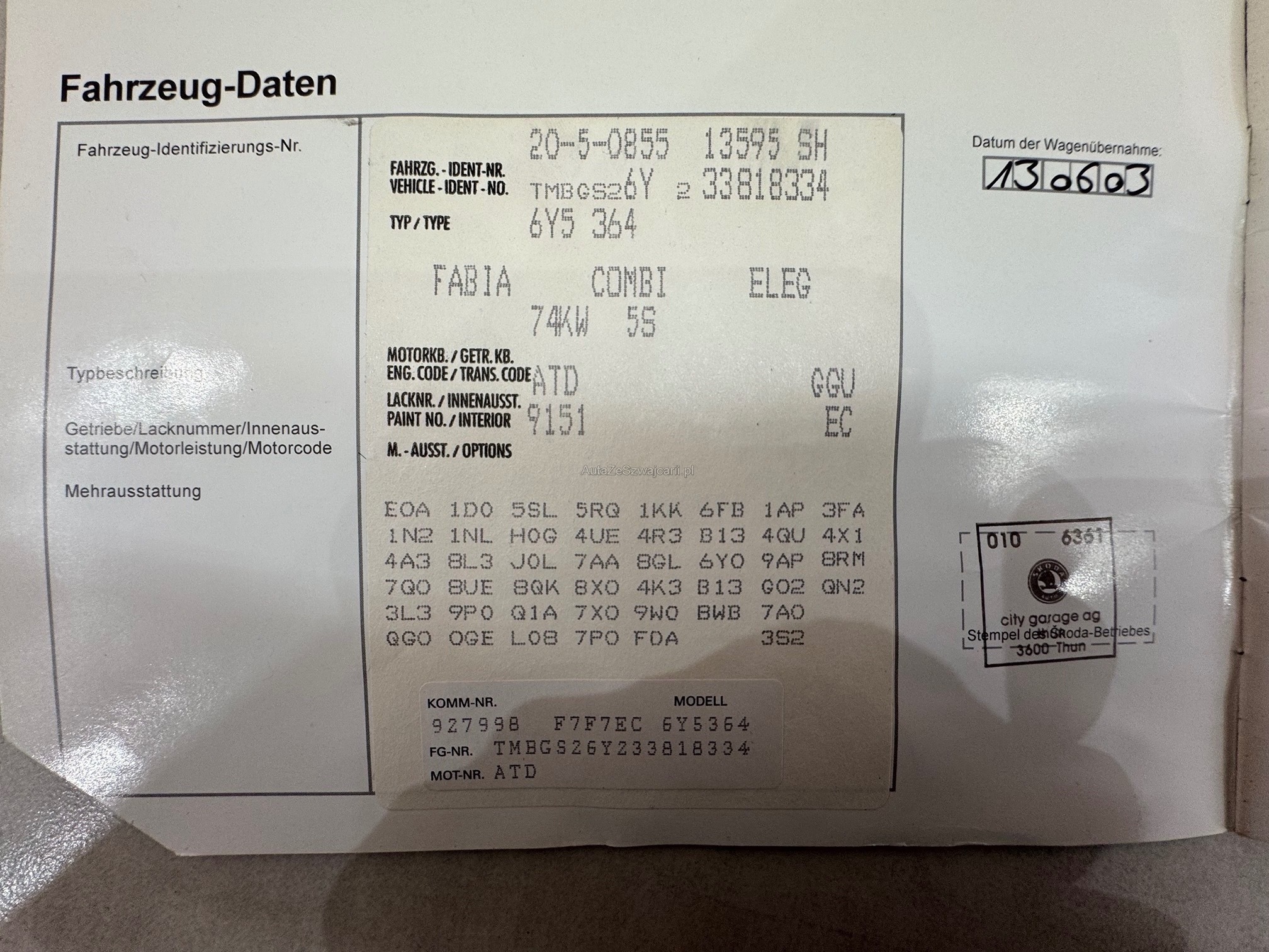 | Kommentar | Fahrzeug läuft einwandfrei. Motor und Getriebe i.O. Zustand Siehe Fotos. Am Fahrzeug wurde kein Werkstatttest gemacht (Für sichtbare oder nicht sichtbare Mängel wird nicht gehaftet). Wir testen & kontrollieren nicht alle Funktionen vom Fahrzeug. Das Risiko liegt somit vollumfänglich beim Käufer. Nachdem der Höchstbietende den Zuschlag erhalten hat, gibt es keine Nachverhandlung, auch wenn nicht deklarierte Mängel zum Vorschein kommen sollten. Ab Platz ohne Garantie, Wandelung und Minderung werden wegbedungen. Abholung nach Zuschlag innert 3 Tagen. |