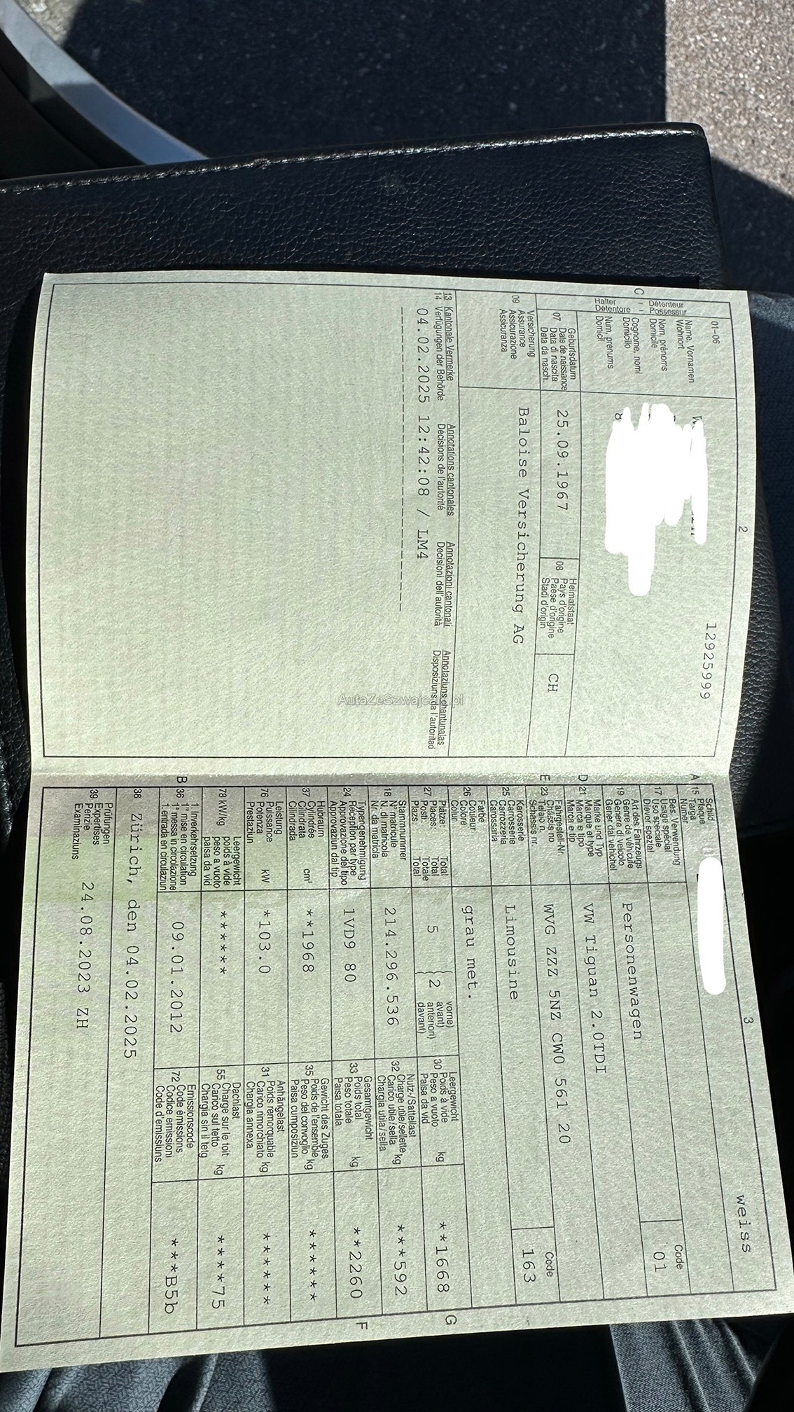 | Kommentar | Es wurde kein Werkstatttest durchgeführt. Fahrzeug ist in Top-Zustand! Zweitschlüssel: Mech. Schlüssel abgebrochen |
