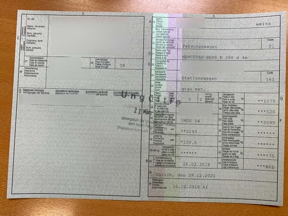 | Fahrzeugausweis | Vorhanden |