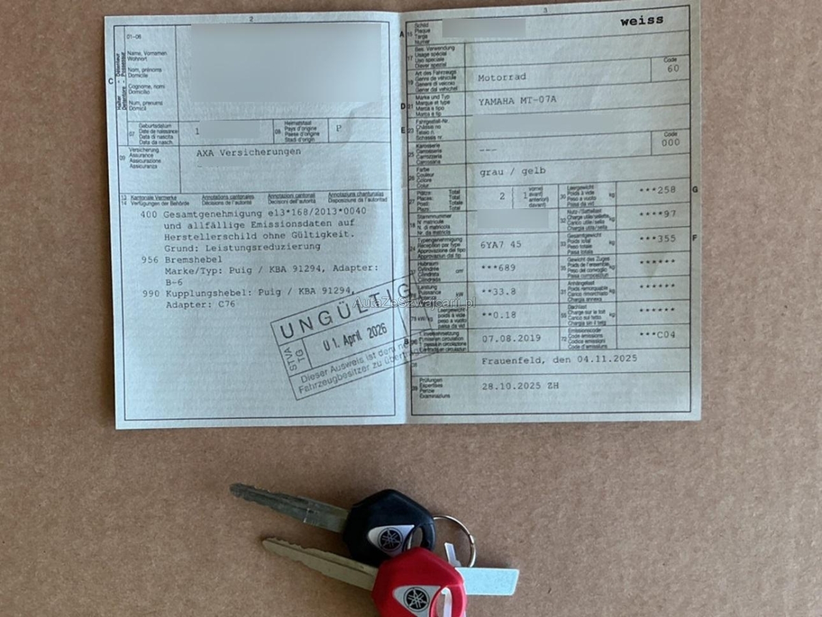 | Fahrzeugausweis | Vorhanden |