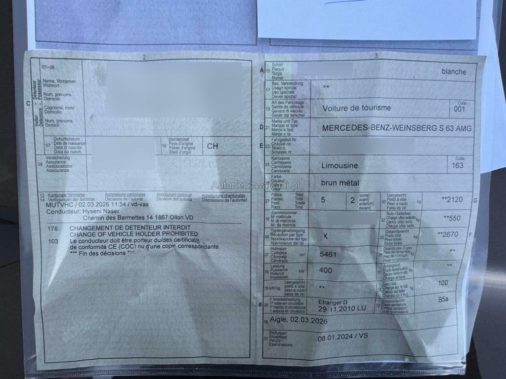 | Fahrzeugausweis | Vorhanden |