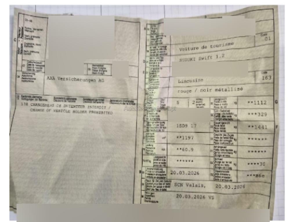 | Fahrzeugausweis | Vorhanden |