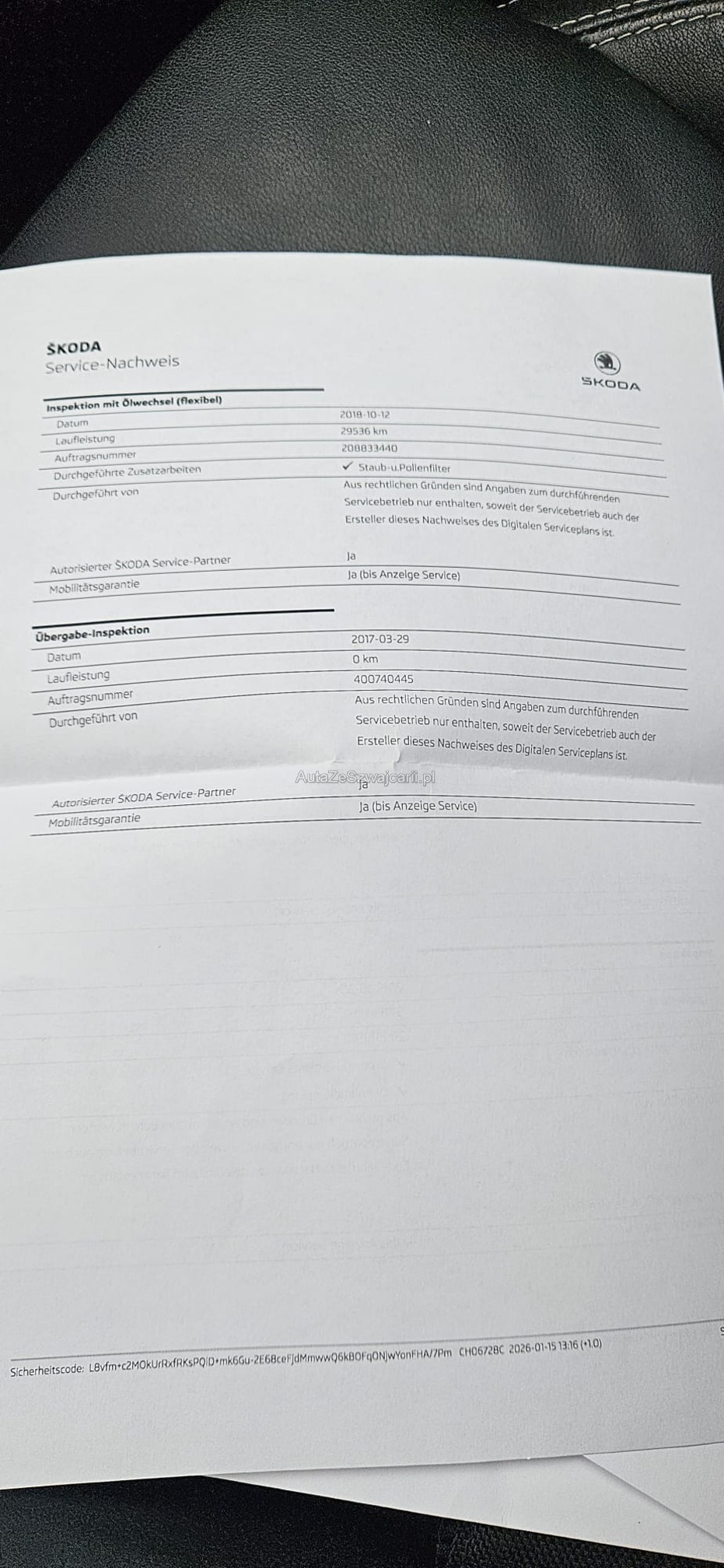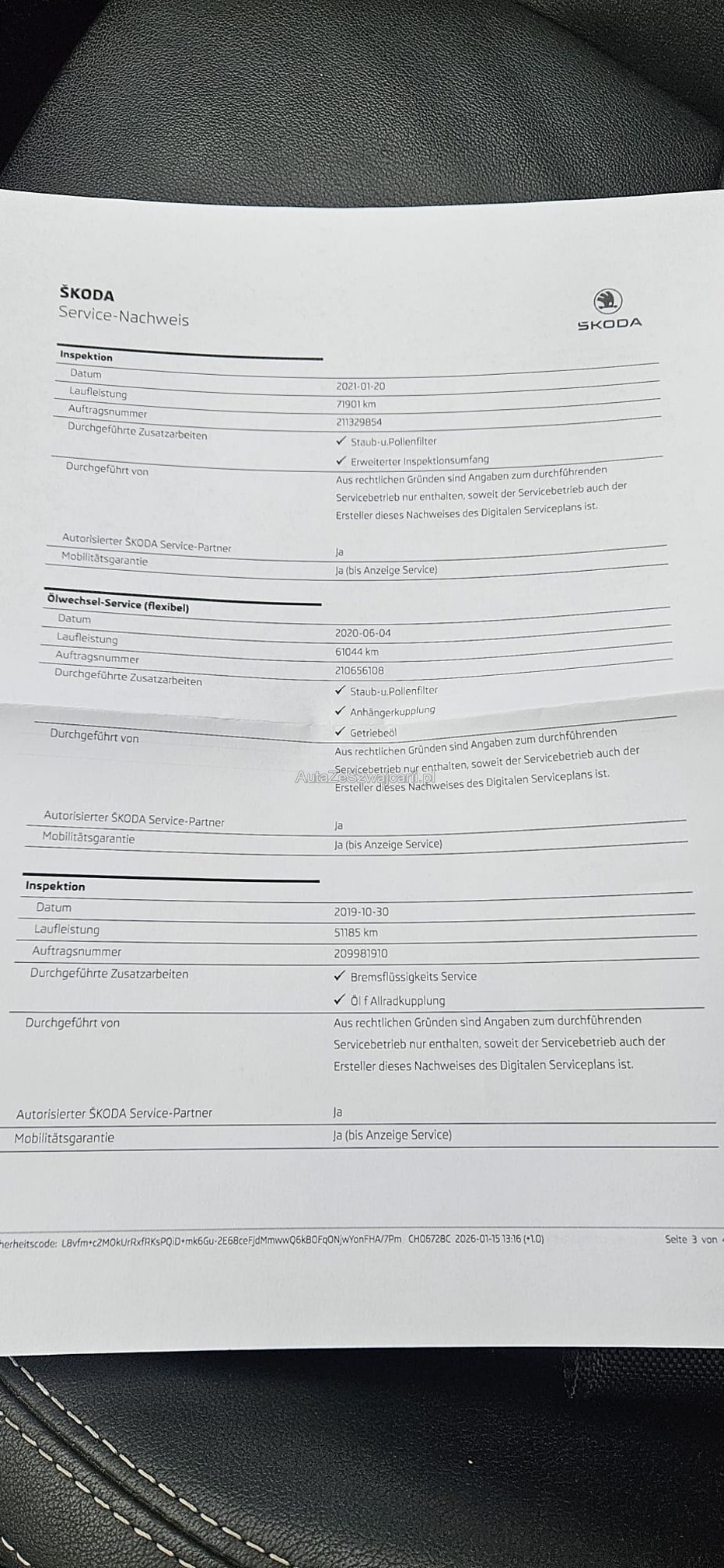 | Kommentar | - Schäden siehe Bilder: Delle Motorhaube,Delle Türe R,Kratzer Stossstange hinten - Sommerräder nicht auf Bilder 19" Skoda Alu Räder RS inklusive - letzter Service 01. durchgeführt - gemäss Kunde hoher Oelverbauch -Geräusch Riementrieb (Zahnriemenersatz empfohlen) - es wurde keine Technsiche Prüfung durchgeführt "Jede Gewährleistung, soweit nach Gesetz möglich, wird wegbedungen, insbesondere sind Wandelung und Minderung ausgeschlossen" |