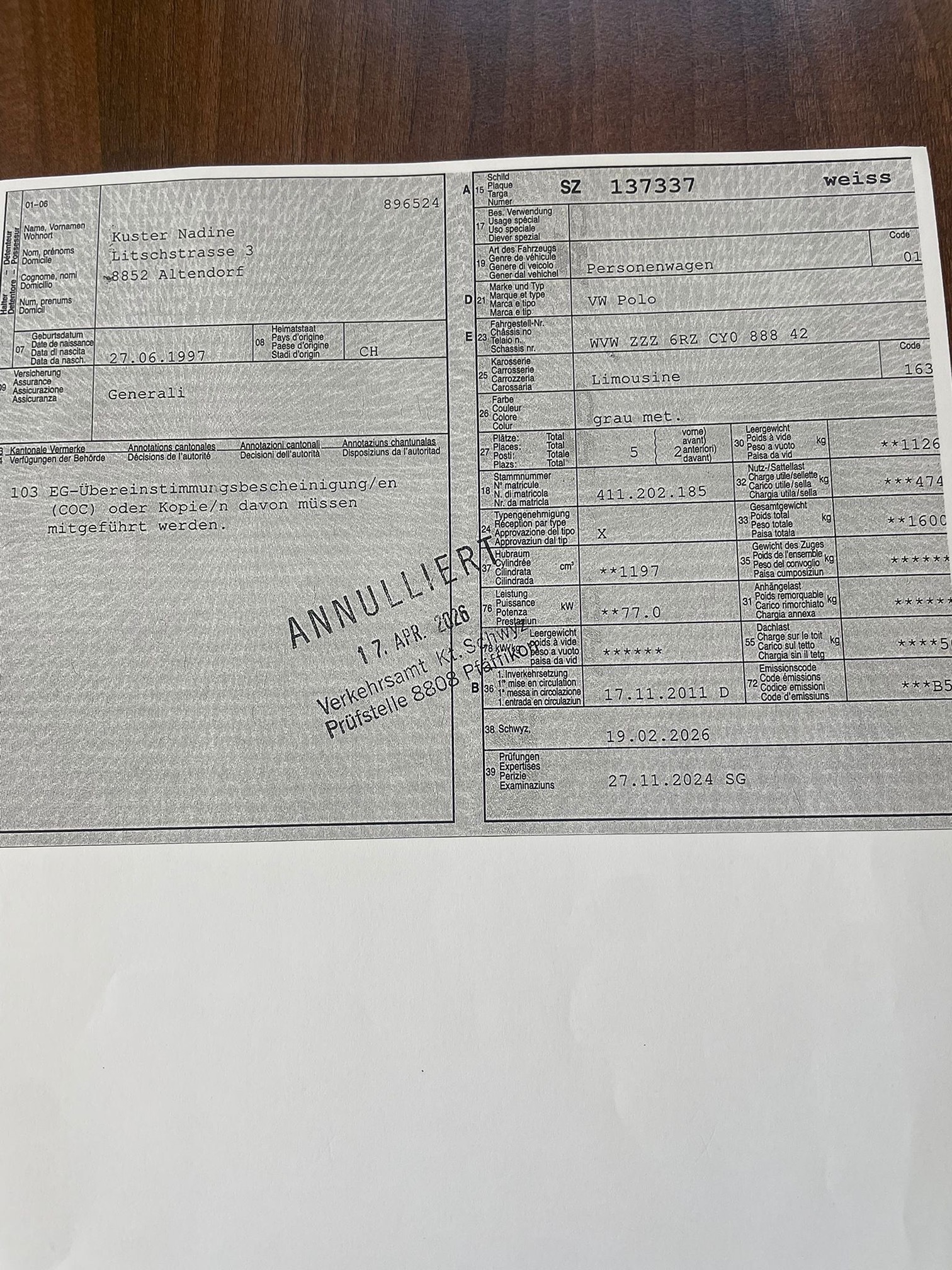 | Letzte Inspektion | None |