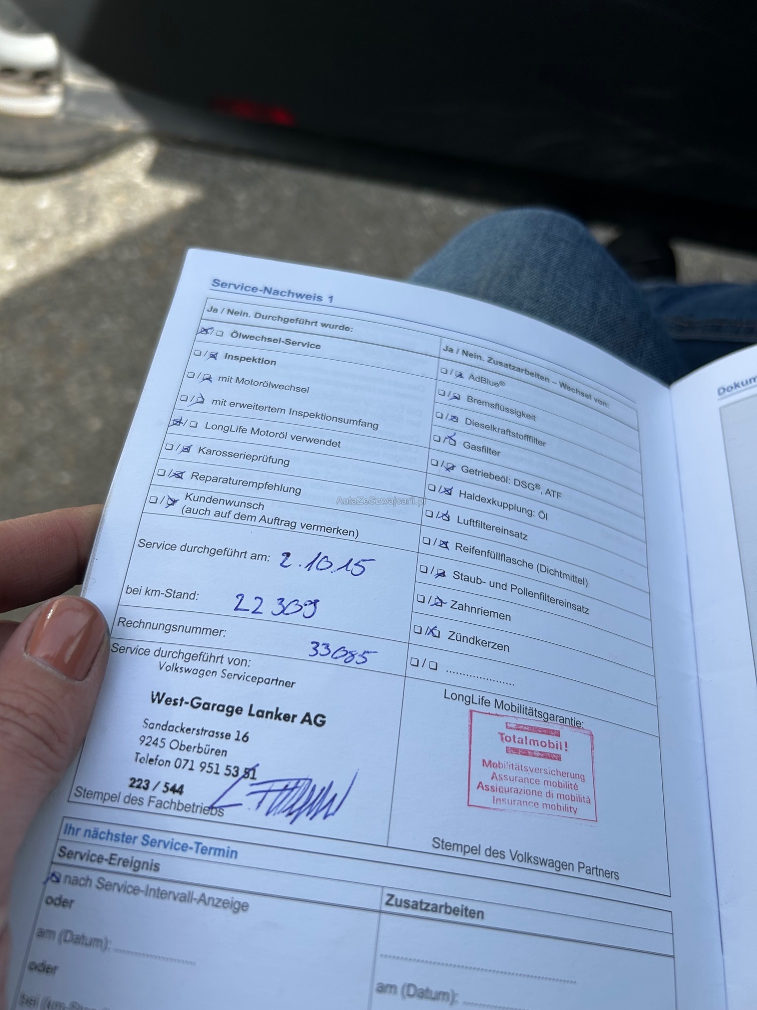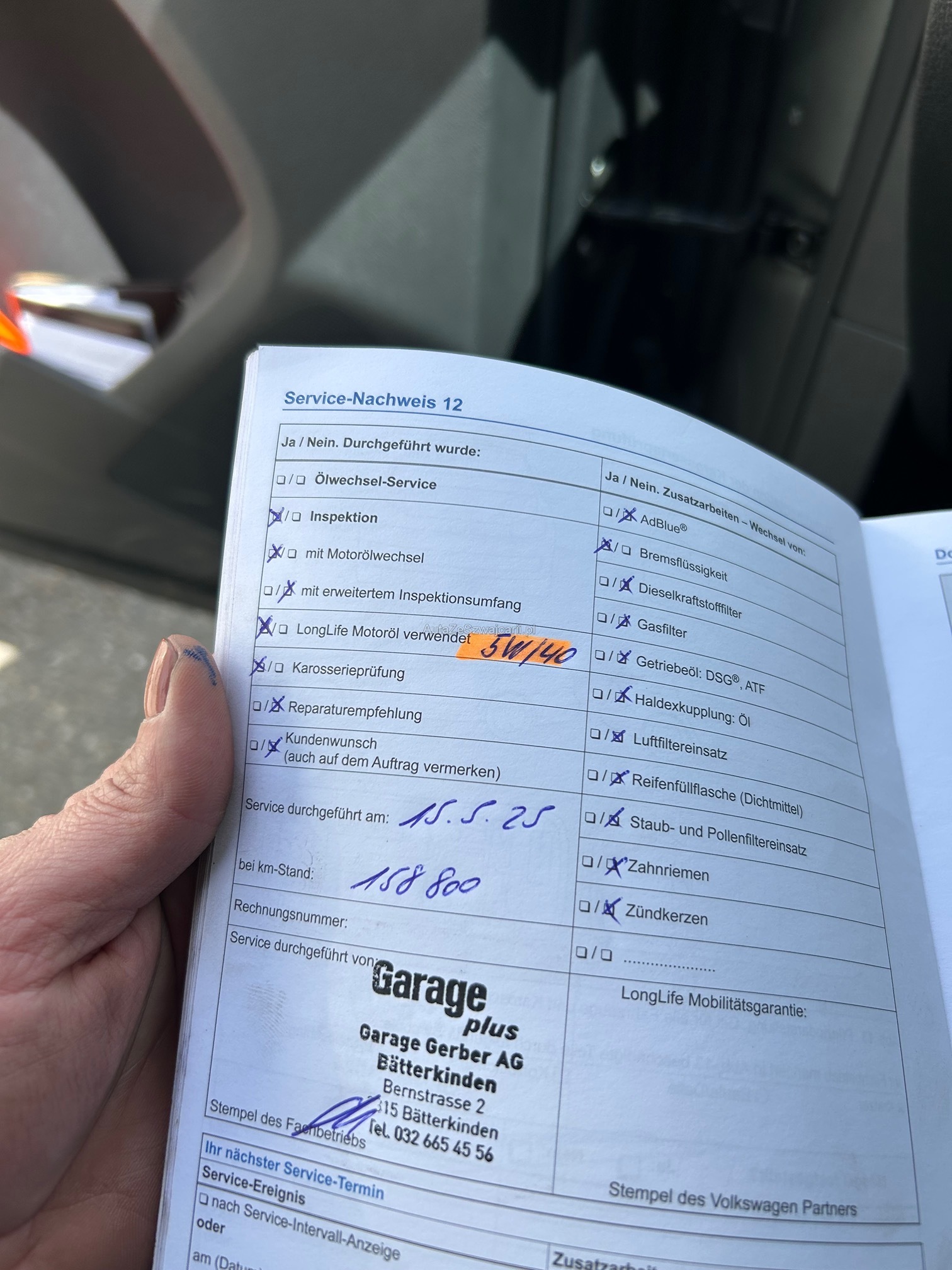 | Kommentar | Inspektion mit Getriebe-öl Service fällig. MFK fällig. Querlenker hinten zu ersetzen(rostig). Gemäs Kunde Ölverbrauch. Kein weiterer Werkstatttest durchgeführt. Ohne Garantie ab Platz. |