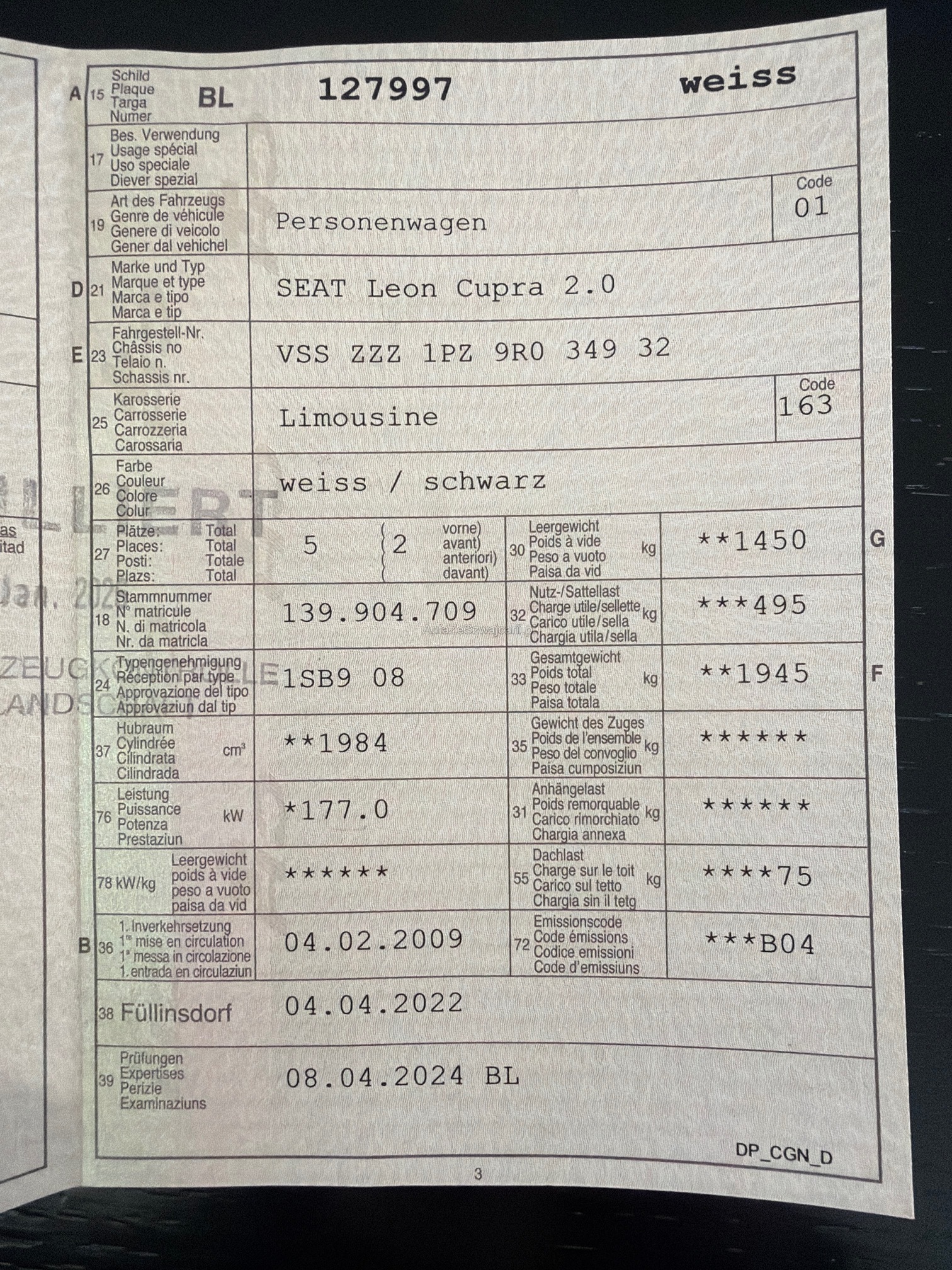 | Kommentar | Am Fahrzeug wurde kein Werkstatttest gemacht (für sichtbare oder nicht sichtbare Mängel wird nicht gehaftet). Wir testen und kontrollieren nicht alle Funktionen vom Fahrzeug. Das Risiko liegt somit vollumfänglich beim Käufer. Nachdem der Höchstbietende den Zuschlag erhalten hat, gibt es keine Nachverhandlung, auch wenn nicht deklarierte Mängel zum Vorschein kommen sollten. Ab Platz ohne Garantie, Wandelung und Minderung werden wegbedungen. Fahrzeug hat Hagelschaden. |