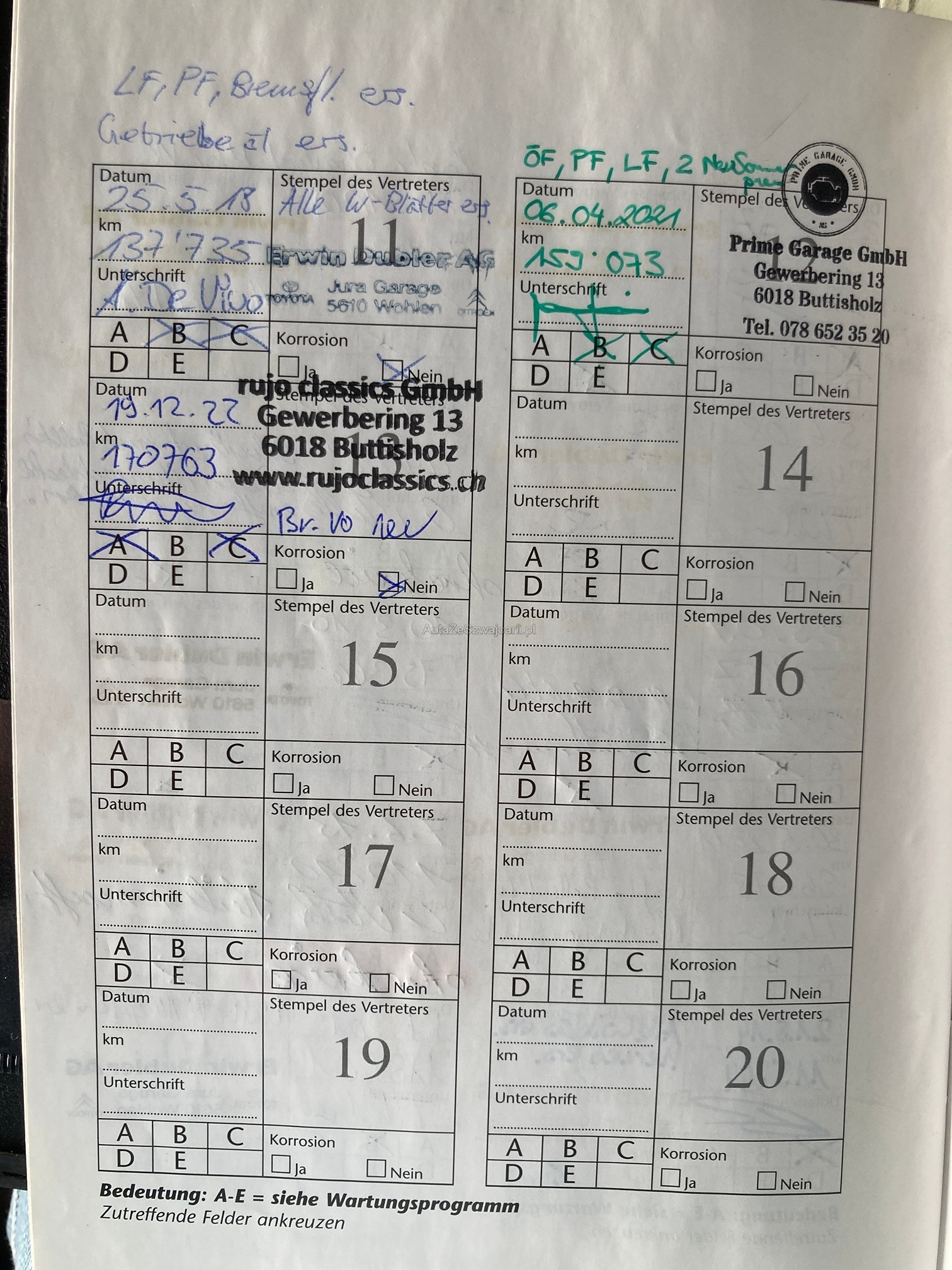 | Kommentar | Fahrzeug hat div. kl. Dellen und Kratzer gem. Fotos! Frontscheibe/Front hat Steinschläge gem. Foto! Folie an Front löst sich! Fahrzeug hat an div. Stellen Rost, teilweise gem. Fotos sichtbar!! Weitere Informationen sind nicht vorhanden. Das Fahrzeug wurde von uns nicht mechanisch und von unten angeschaut und geprüft! Verkauf erfolgt ab Platz ohne Garantie und Nachwährschaft, sowie Wandelung und Minderung ausgeschlossen. Fahrzeug wurde nicht mechanisch geprüft! Schäden und Zustand siehe Fotos. Es werden keine Nachverhandlungen geführt, auch für Schäden die nicht sichtbar sind oder nicht deklariert wurden. Fahrzeug kann besichtigt werden, somit liegt das Risiko vollumfänglich beim Käufer. Fahrzeugabholung innerhalb von drei Arbeitstagen nach Erhalt des Zuschlages. Danach wird Fr. 50.-/Tag verrechnet! |