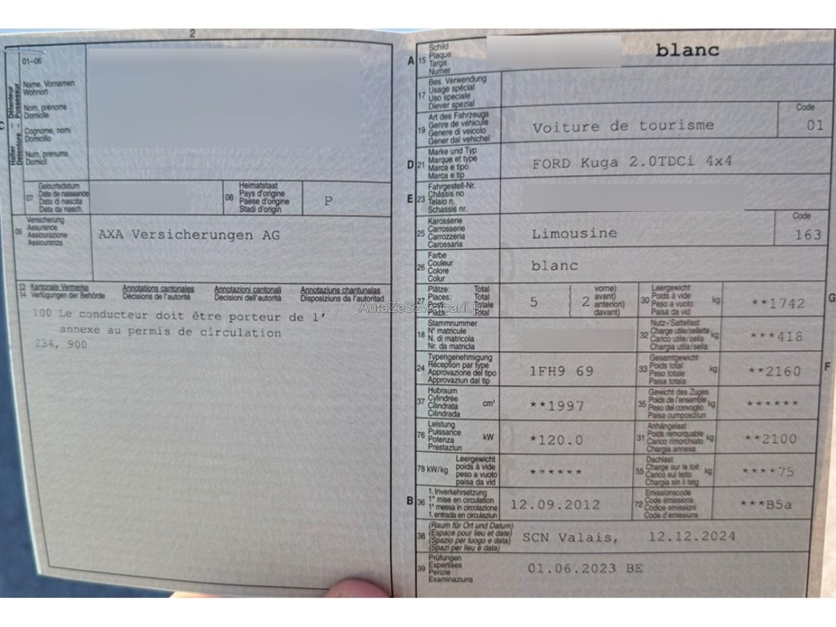 | Fahrzeugausweis | Vorhanden |