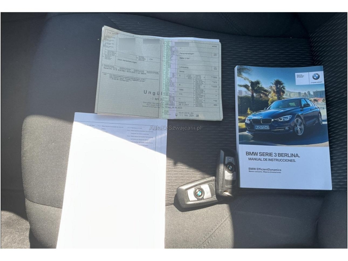 | Sonderausstattung | Sitze: Vordersitze heizbar, Navigationssystem Business, Uni-Lackierung, Räder: Bereifung mit Notlaufeigenschaften, Assist: Rückfahrkamera, BMW Garantie: 3 Jahre oder 100'000 km Gratis-Service: 10 Jahre oder 100'000 km (ab 1. Inv.), Instrumentenkombination mit erweiterten Umfängen, Innenspiegel automatisch abblendbar, Assist: Park Distance Control vorne und hinten, Tempomat mit Bremsfunktion, Innen- und Aussenspiegel automatisch abblendend, Klimatisierungsautomatik, Lenkrad: Sport-Lederlenkrad, Leichtmetallfelgen im V-Speichen-Design 395, 17J, Dekor: Interieurleisten schwarz hochglänzend mit Akzentleisten Perlglanz Chrom, Ablagenpaket |
