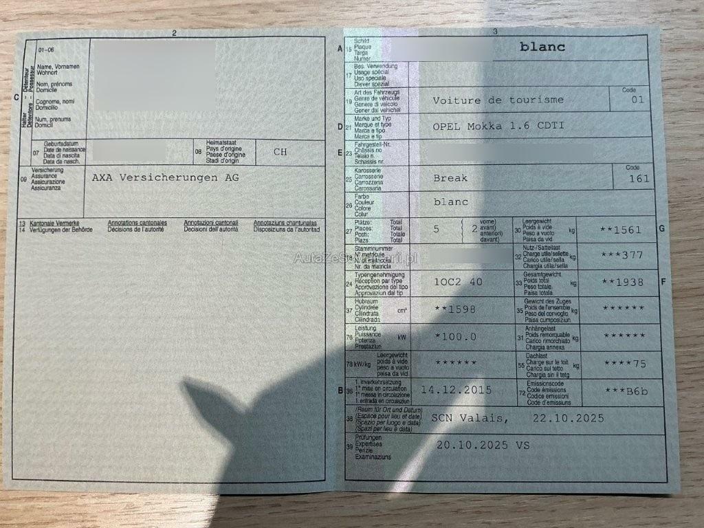| Fahrzeugausweis | Vorhanden |