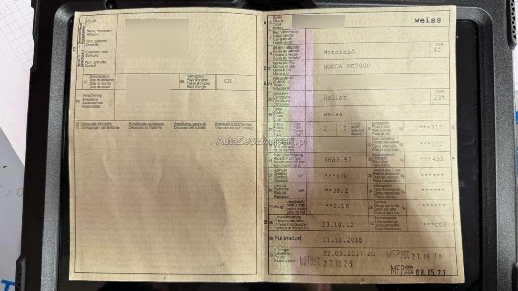 | Fahrzeugausweis | Vorhanden |