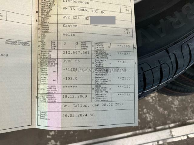 | Condition_and_Equipment | Zustand Fahrzeug ist fahrbar. Bereifung Fahrzeug wird mit Winterräder abgegeben. Sonstiges Fahrzeugdokumente vorhanden. Weitere wichtige Hinweise OHNE Innenausbau --- Rechts Anstoss rechts im Bereich der C-Säule. Heck Seitenwand hinten rechts eingedrückt/aufgestaucht. Heckklappe eingedrückt. Achse Hinterachse rechts beschädigt. Sonstige Schäden Div.Carrosserie Teile sind leicht beschädigt. --- Serienaustattung Airbag Fahrer und Beifahrerseite Servolenkung 2 Schiebefenster im Lade-/ Fahrgastraum Schiebetüre rechts Elektronische Wegfahrsperre Lenkrad verstellbar Heckscheibenwischer Leuchtweitenregulierung ESP Elektronisches Stabilitätsprogramm Abblendbarer Innenspiegel Zusatzheizung Hartfaser- Seitenwandverkleidung im Laderaum Gummi-Bodenabdeckung im Laderaum Fahrersitz verstellbar Verzurr-Ösen im Laderaum ABS + EDS + ASR Dieselpartikelfilter Warmluftkanal im Lade-/ Fahrgastraum Berganfahrassistent Radio/ CD RCD 210 Erhöhtes Gesamtgewicht 3.0 t Keine Gewähr auf die Angaben der Serienausstattungen Sonderausstattung Holzboden im Laderaum 2. Schiebetüre links Dunkel eingefärbte Fenster im Fahrgastraum Geschwindigkeitsregelanlage Klimaanlage halbautomatisch Hohe Trennwand mit Schiebefenster Aktivkohlefilter Multifunktionsanzeige mit TFT-Display Sonstige Ausstattung und Zubehör Anhängerkupplung |