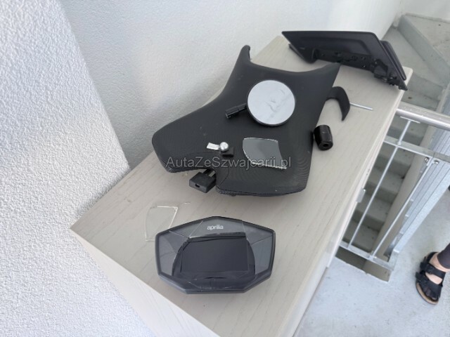 | Condition_and_Equipment | Demontage Persönliche Gegenstände oder Ladegut im Fahrzeug werden entfernt. Zustand Fahrzeug muss transportiert werden (Höhe und Breite beachten). Fahrzeug ist rollbar. Sonstiges Fahrzeugdokumente vorhanden. Schlüssel Nur ein Schlüssel vorhanden. Zweirad-Kategorie Motorrad Hersteller- und Gewährleistungsbedingungen Die Fahrzeuggarantie oder Gewährleistung wird möglicherweise nicht vom Hersteller fortgeführt Weitere wichtige Hinweise Laufleistung geschätzt auf 4000 km, die Instrumente sind beschädigt --- Links Linke Seite beschädigt. Ist auf die linke Seite gefallen. Verschalung oben links verkratzt. Verschalung oben links gebrochen. Verschalung unten links verkratzt. Verschalung hinten links verkratzt. Rechts Rechte Seite beschädigt. Ist auf die rechte Seite gefallen. Verschalung oben rechts verkratzt. Verschalung oben rechts gebrochen. Verschalung unten rechts verkratzt. Verschalung hinten rechts verkratzt. Front Vorderrad beschädigt. Gabel beschädigt. Lenker verbogen. Heck Schwinge hinten Risiko. Verschalung hinten verkratzt. Mitte Kraftstofftank deformiert. Sitzpolster gerissen. Motor Risiko Motor. Elektrik Kabelstränge verbrannt, beschädigt, abgerissen. Armaturen beschädigt. Glas Windschutzscheibe ist gerissen. Sonstige Schäden Div. Teile sind leicht beschädigt. Weitere Beschädigungen Die Aufzählung ist nicht abschliessend. Fahrzeugzustand gemäss Fotos. Der Motor konnte bei der Besichtigung nicht gestartet werden. Das Fahrzeug hat sich überschlagen beim Unfall. |