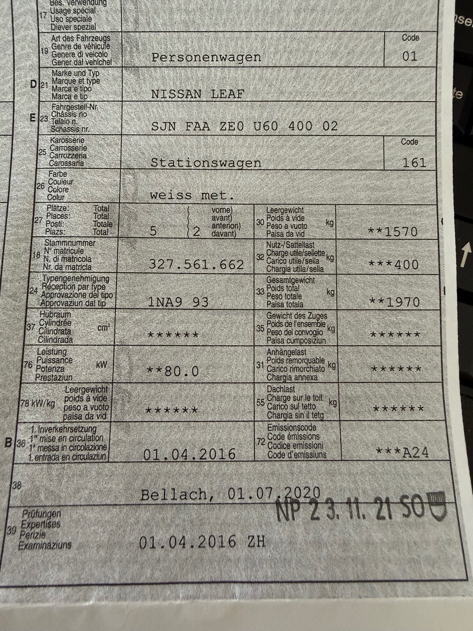 | Letzte Inspektion | 2021-11-01 |