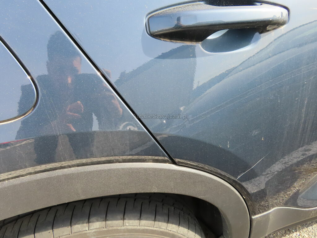 - Rétroviseur et clignotant droit, aile avant gauche, portes avant et arrière gauche et droite, porte avant gauche, pare-chocs arrière, spoiler arrière, ailes arrière, hayon : Impactés-éraflés