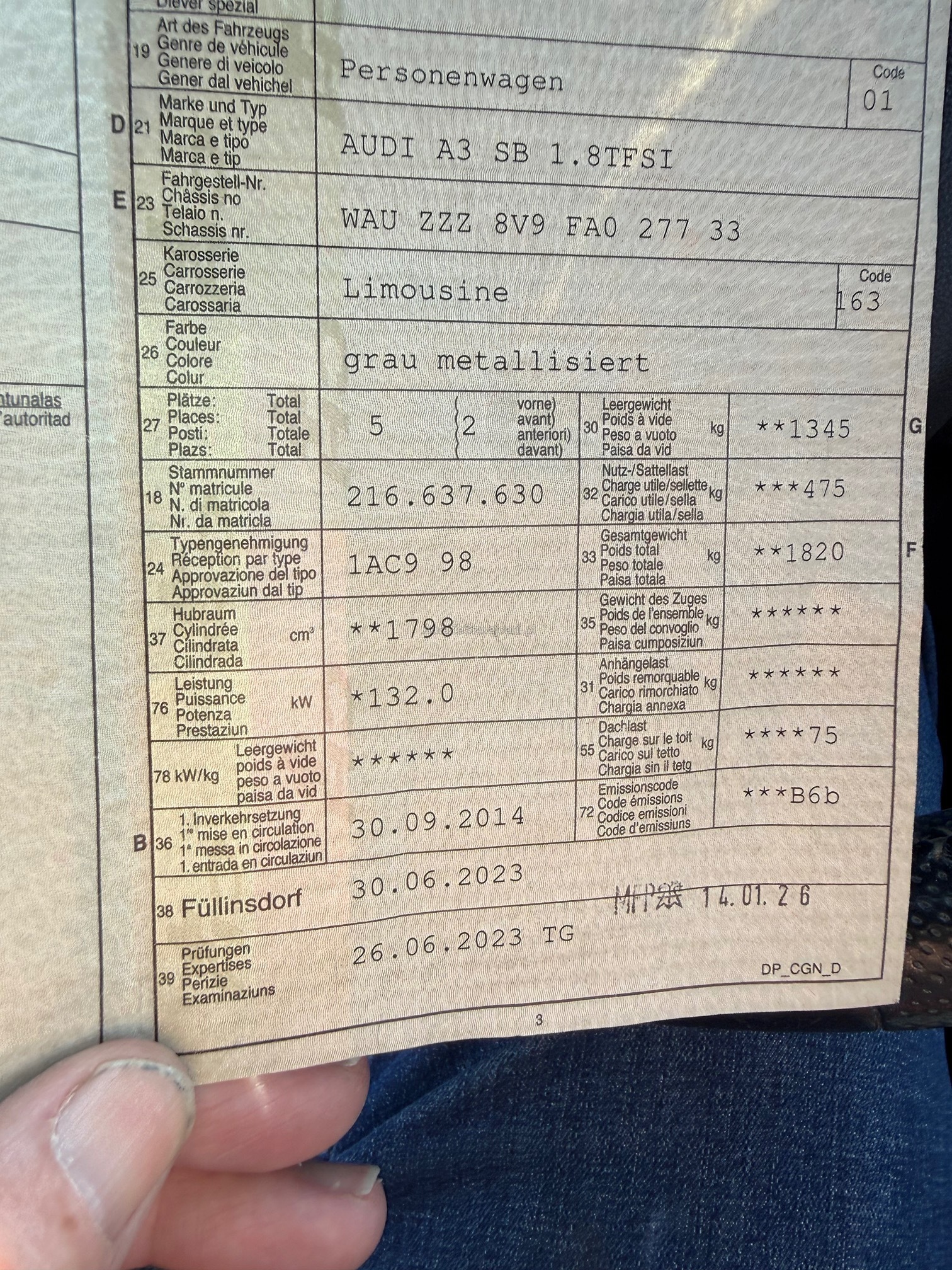 | VIN | WAUXXX |