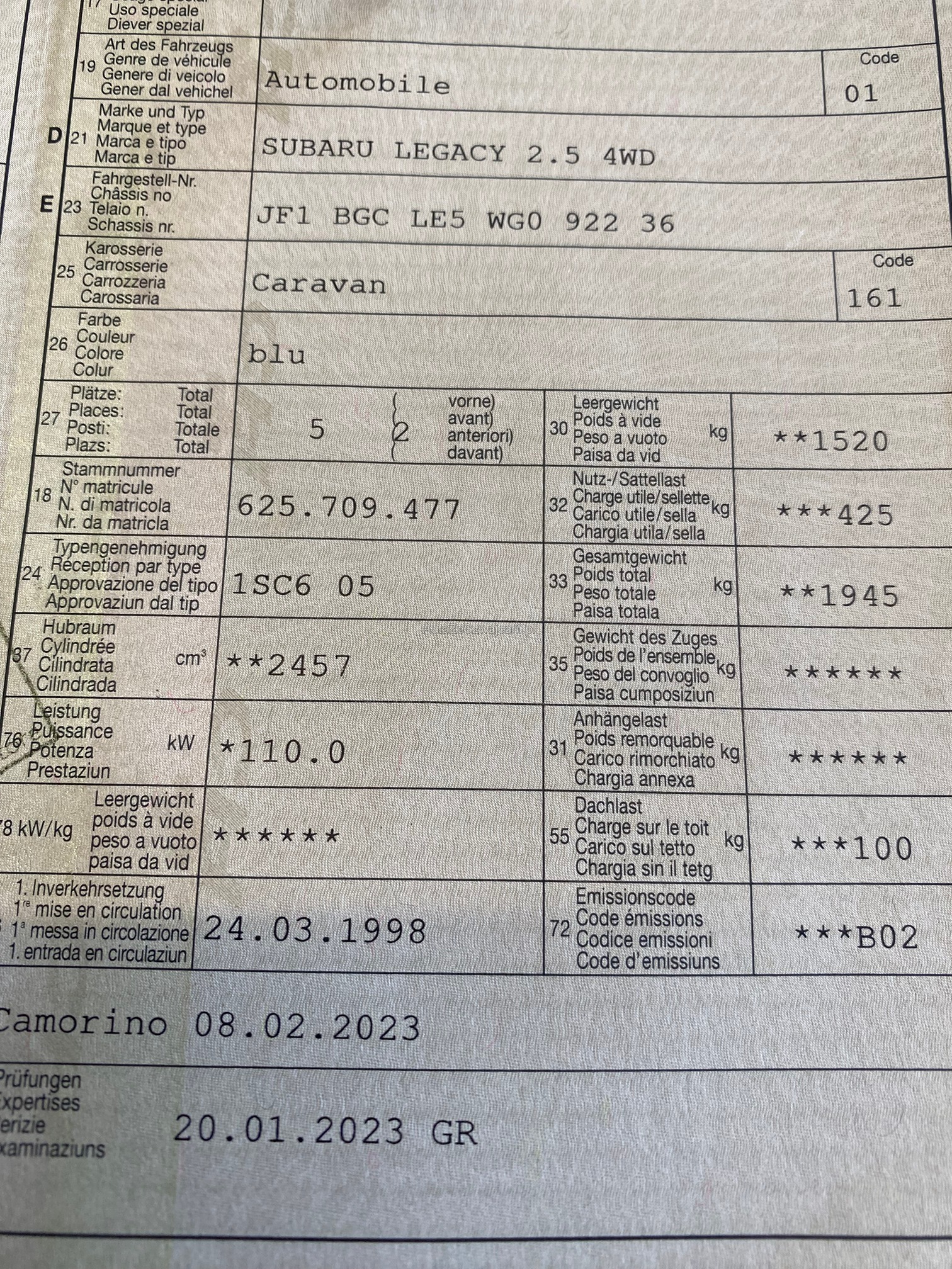 | Kommentar | Luft-federn defekt, Am Fahrzeug wurde keine vollumfängliche Prüfung der mechanischen Teile und der Carrosserie durchgeführt! Das Risiko liegt somit vollumfänglich beim Käufer. Um Missverständnisse zu vermeiden kann das Fahrzeug auf Voranmeldung besichtigt & getestet werden. Wird davon bewusst kein Gebrauch gemacht, liegt die Verantwortung beim Käufer. Nach Zuschlag, keine Nachverhandlungen möglich. Ab Platz ohne Garantie, Wandelung und Minderung werden wegbedungen. |
