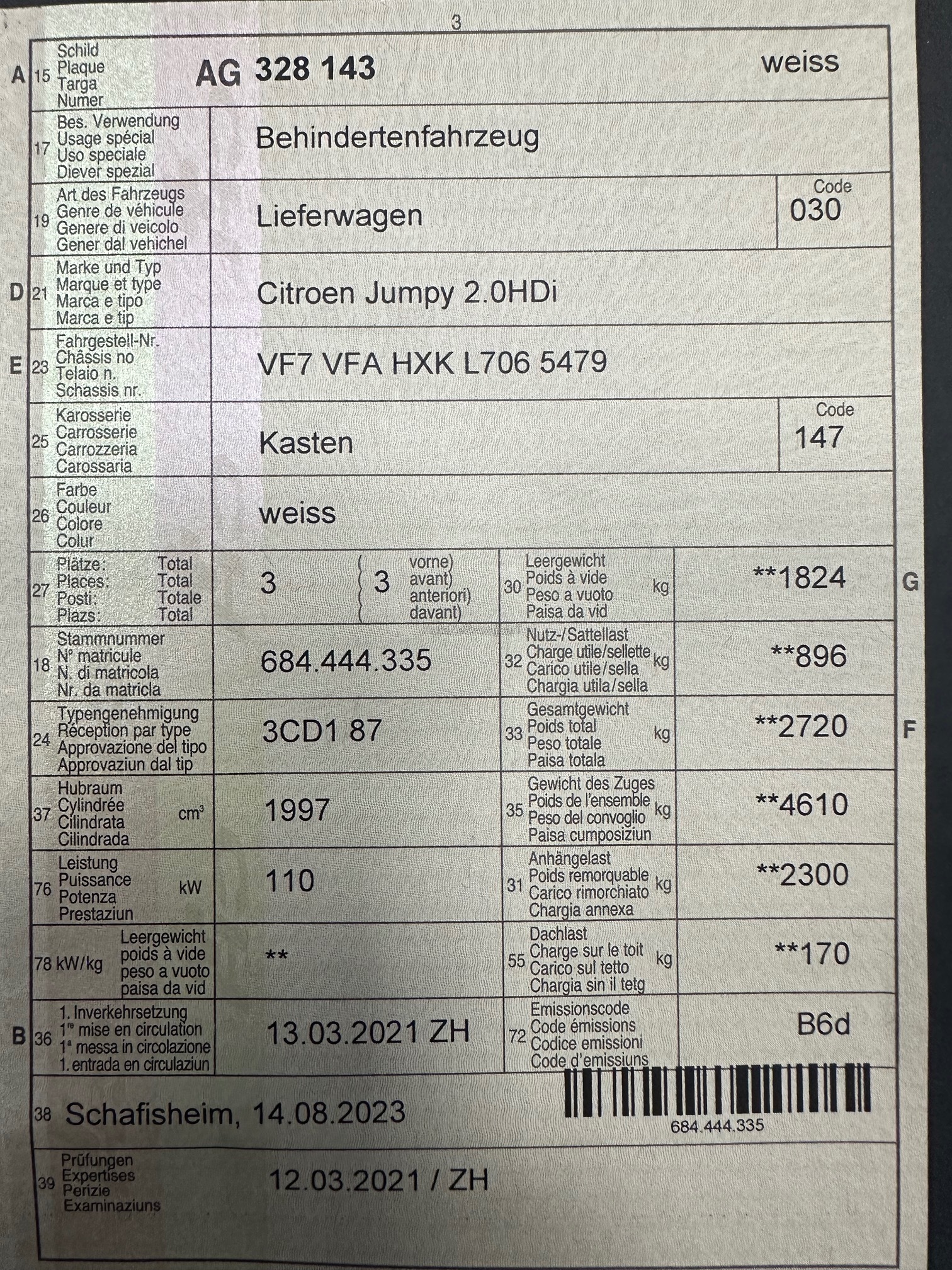 | Kommentar | am Fahrzeug wurde keine Werkstattprüfung durchgeführt! / für sichtbare und nicht sichtbare Mängel wird keine Haftung übernommen- das Risiko liegt vollständig beim Käufer / das Fahrzeug gehört einem Hunden Trainer zum Hunde transportieren und im Fahrzeug zu schlafen / Schlüssel 2 aber beide ohne Fernbiedung / bei den Pedalen sollte noch Halterung fertig ausgebaut werden oder so lassen / evt. Verkauf auf Wohnmobil |