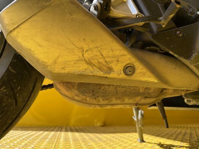| Condition_and_Equipment | Zustand Fahrzeug muss transportiert werden (Höhe und Breite beachten). Fahrzeug ist NICHT fahrbar. Fahrzeug ist rollbar. Fahrzeug lag auf der Seite. Bereifung Fahrzeug wird mit Sommerräder abgegeben. Sonstiges Fahrzeugdokumente vorhanden. Schlüssel Nur ein Schlüssel vorhanden. --- Links Linke Seite beschädigt. Rechts Rechte Seite beschädigt. Heck Heck eingedrückt. Motor Motorstörung: Warnleuchte aktiv Achse Risiko Vorderachse. Risiko Hinterachse. Risiko Lenkung. Elektrik Risiko Steuergeräte. Risiko Scheinwerfer. Sonstige Schäden Div.Carrosserie Teile sind leicht beschädigt. Weitere Beschädigungen Zubehör: Bremshebel,Fussrasten, Leuchten, Frontcover / Scheibe, Rückspiegel. Beschädigungen siehe Fotos; Rahmen verkratzt, verbogen / alle Cover verkratz, teileweise gerissen, Motor- / Getriebegehäuse beschädigt / Auspuffblende beschädigt, Felge hinten beschädigt, Risiko Gabel, Motor läuft (Risiko), Hinterradschwinge beschädigt etc. |
