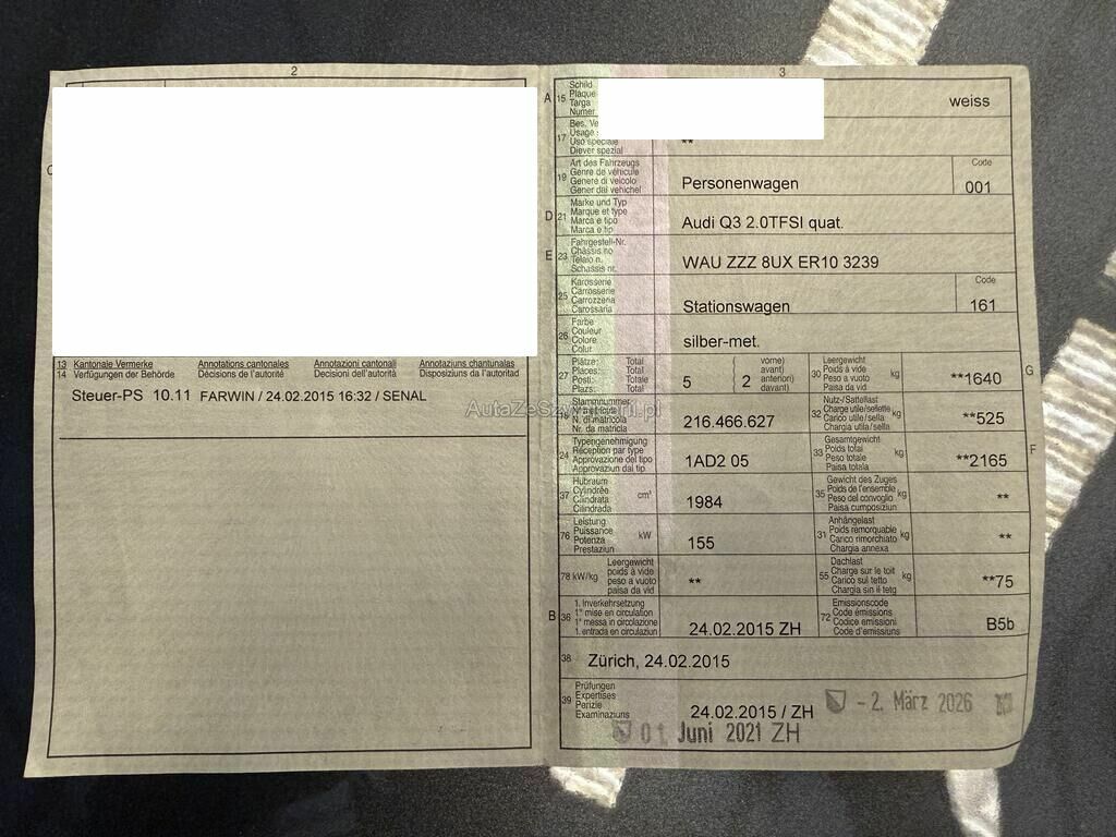 | Typ | Q3 2.0 TFSI quattro S-Tronic |