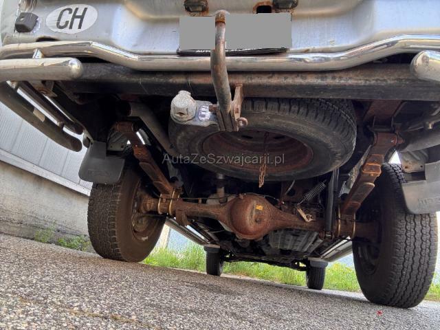 | Condition_and_Equipment | Schlüssel Nur ein Schlüssel vorhanden. Kategorie Das Fahrzeug wird vom Besitzer noch benutzt. --- Achse Risiko Hinterachse. Sonstige Schäden Div.Carrosserie Teile sind leicht beschädigt. Lackierung matt (stumpf, beschädigt). Hagel Hagelschaden leicht. --- Serienaustattung Airbag Fahrer und Beifahrerseite Zentralverriegelung Elektrische Fensterheber vorne + hinten Aussenspiegel elektrisch verstellbar Differentialsperre Servolenkung Elektronische Wegfahrsperre Getönte Scheiben Kopfstützen vorne Kopfstützen hinten Keine Gewähr auf die Angaben der Serienausstattungen Sonderausstattung Metallic-Lackierung Sonstige Ausstattung und Zubehör Hardtop, Trittbretter, Anhängerkupplung, Radio |