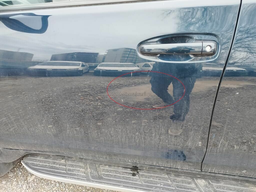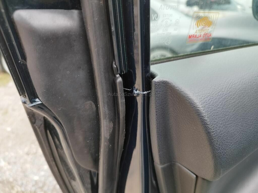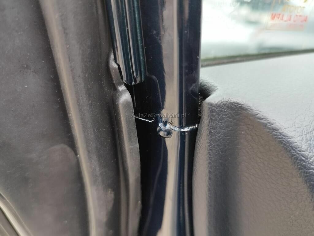 Die Türe vorne links weist Einbruchspuren auf, der Türrahmen vorne links hat Kratzspuren, der Dachrahmen links hat Kratzspuren und eine Delle, die B-Säule links hat Kratzspuren, die Türe hinten links hat einen Kratzer, der Dachrahmen rechts hat einen Kratzer, das Typenschild wurde gewechselt.