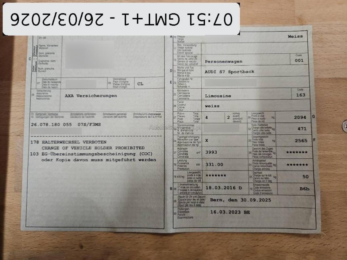 | Fahrzeugausweis | Vorhanden |