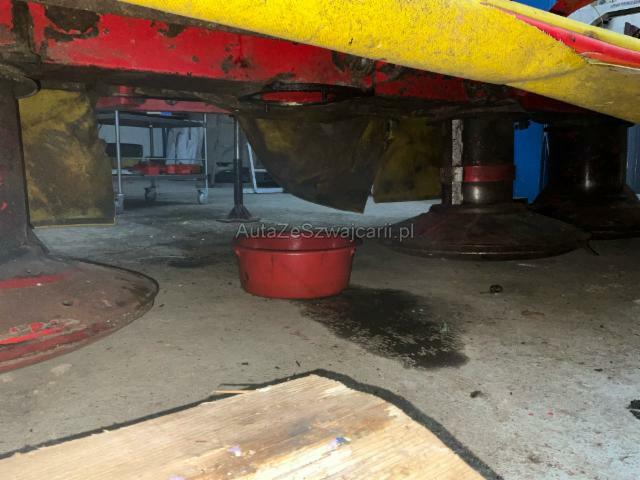 | Condition_and_Equipment | Zustand Fahrzeug muss transportiert werden (Höhe und Breite beachten). Weitere wichtige Hinweise Die Aufnahme Teleskoplader wird nicht mitgegeben Zapfwelle ist nicht dabei --- Weitere Beschädigungen 3 Mähteller beschädigt Trompete beschädigt Antriebswelle inkl. Lager beschädigt Schwader Zuführung inklusive Nabe gebrochen Schutztuch beschädigt Kegelrad beschädigt Träger rechts beschädigt |