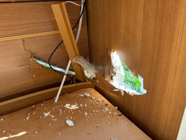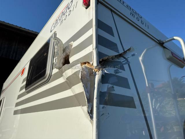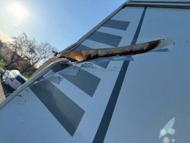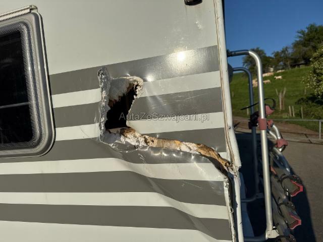 | Condition_and_Equipment | Demontage Persönliche Gegenstände oder Ladegut im Fahrzeug werden entfernt. Zustand Fahrzeug muss transportiert werden (Höhe und Breite beachten). Fahrzeug ist NICHT fahrbar. --- Dach Dachkabine eingedrückt. Innenwohnraum Innenwohnraum gepflegt. Inneneinrichtung gut erhalten. Sonstige Schäden Div.Carrosserie Teile sind leicht beschädigt. Hagel Hagelschaden leicht Front. Hagelschaden leicht Heck. Hagelschaden mittel auf der linken Seite. Hagelschaden mittel auf der rechten Seite. Hagelschaden schwer auf dem Dach. --- Sonstige Ausstattung und Zubehör Veloträger, DAB Radio mit Navi , Rückfahrkamera |