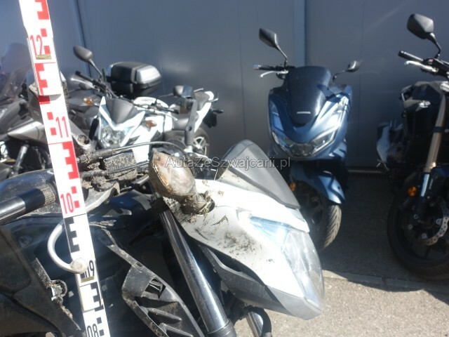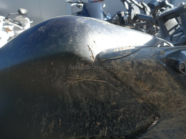 | Condition_and_Equipment | Schlüssel Nur ein Schlüssel vorhanden. --- Front Lenker verbogen. Weitere Beschädigungen Frontverkleidung — Lenker — Rückspiegel rechts + Hebel rechts + Lenkerspitze rechts — Verkleidung lat rechts — Tank — Rahmen — Keilplatte rechts — Bremspedal — Heckverkleidung — Schwinge hinten rechts. |