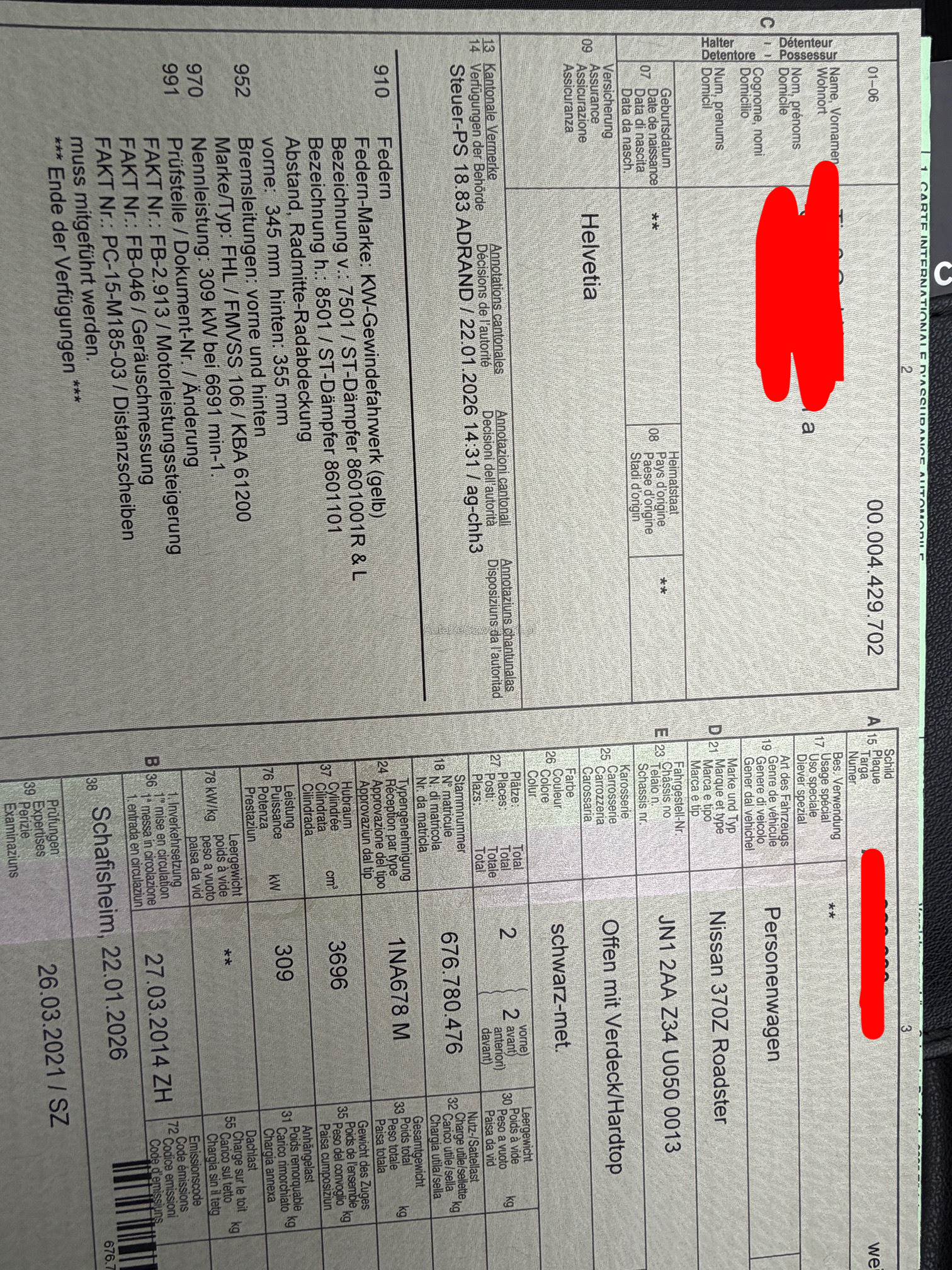 | Kommentar | Wartung müsste ausgeführt werden Am Fahrzeug wurde kein Werkstatttest gemacht (Für sichtbare oder nicht sichtbare Mängel wird nicht gehaftet). Wir testen und prüfen nicht alle Funktionen vom Fahrzeug. Das Risiko liegt somit vollumfänglich beim Käufer. Nach erhalt des Zuschlags, gibt es keine Nachverhandlung, auch wenn nicht deklarierte Mängel zum Vorschein kommen. Ab Platz ohne Garantie oder Gewährleistung, Wandelung und Minderung werden wegbedungen. Fahrzeug hat Tuning . Siehe PDF Datei, alles eingetragen |