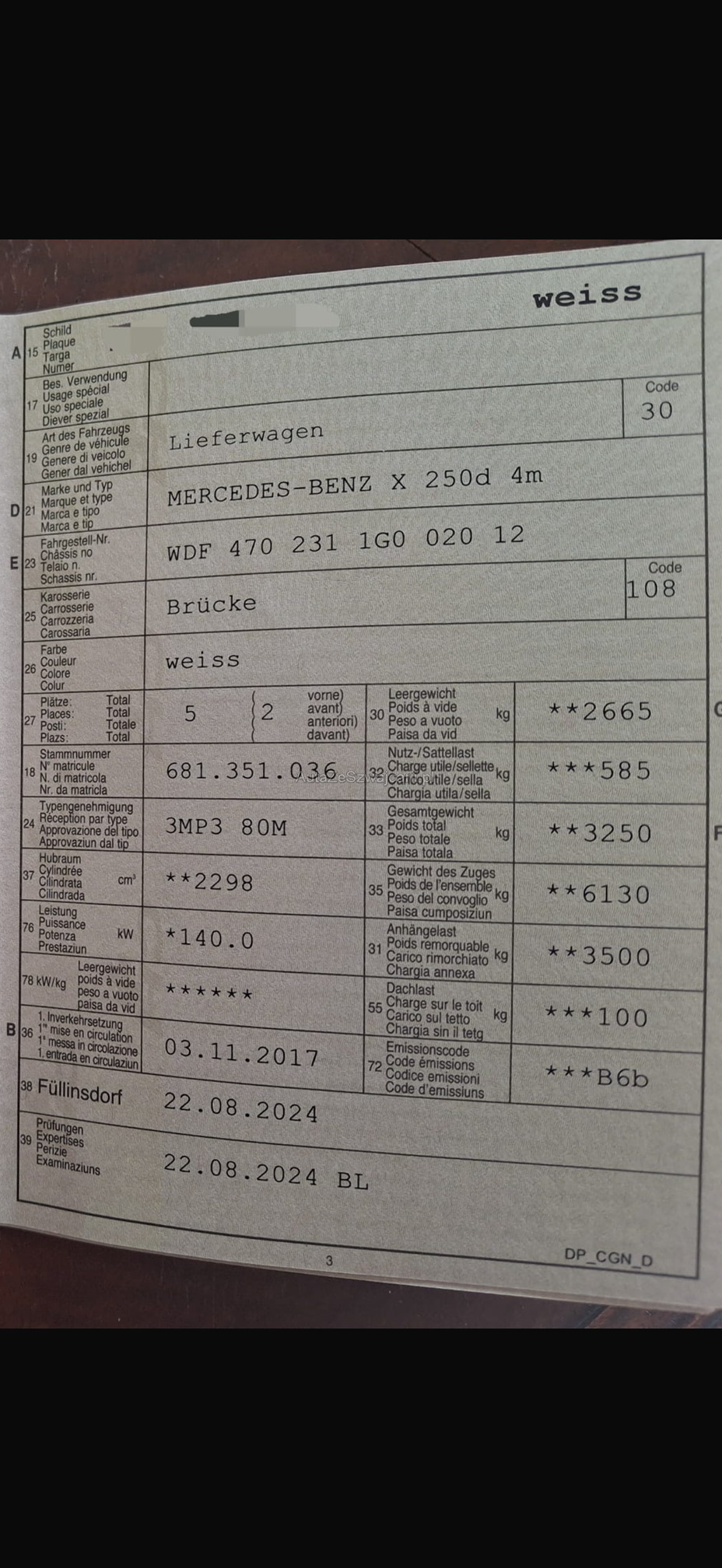 | VIN | WDFXXX |