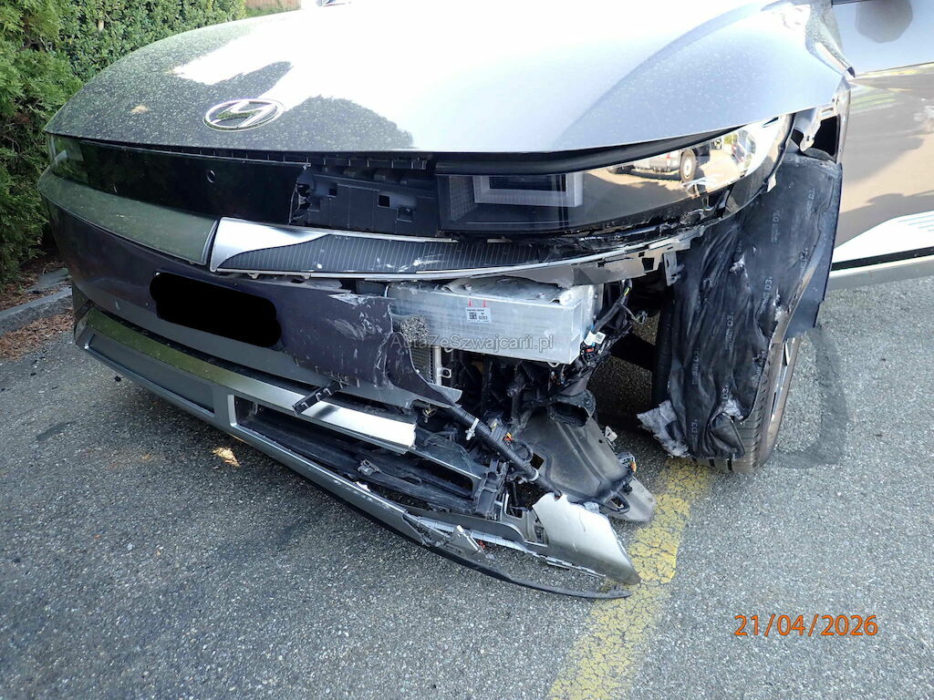 Stossstange vo.li., Scheinwerfer li., Nebellampe vo.li., Balken vo., Kondensator, Kühler, Kühlergrill, Längsträger li., Frontscheibe, Fahrerairbag, Beifahrerairbag, alle Gurtenstraffer