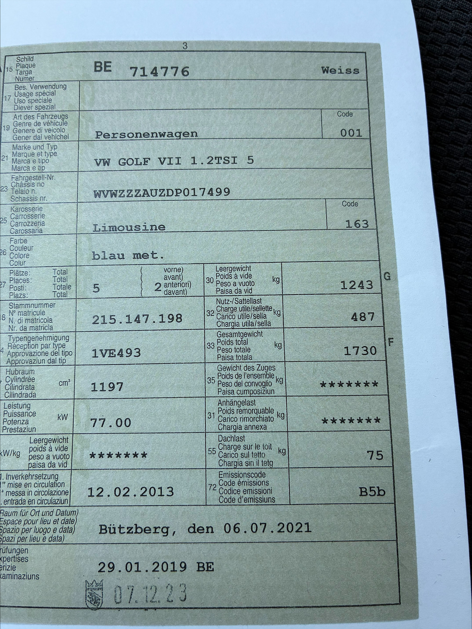 | Letzte Inspektion | 2023-12-01 |