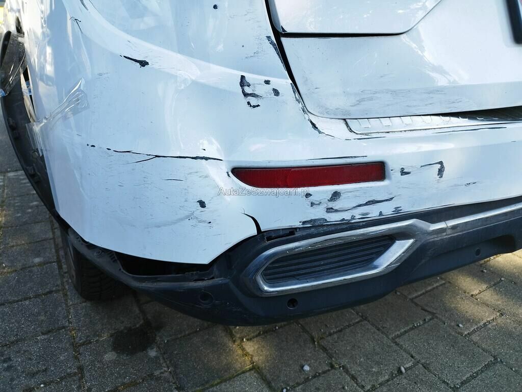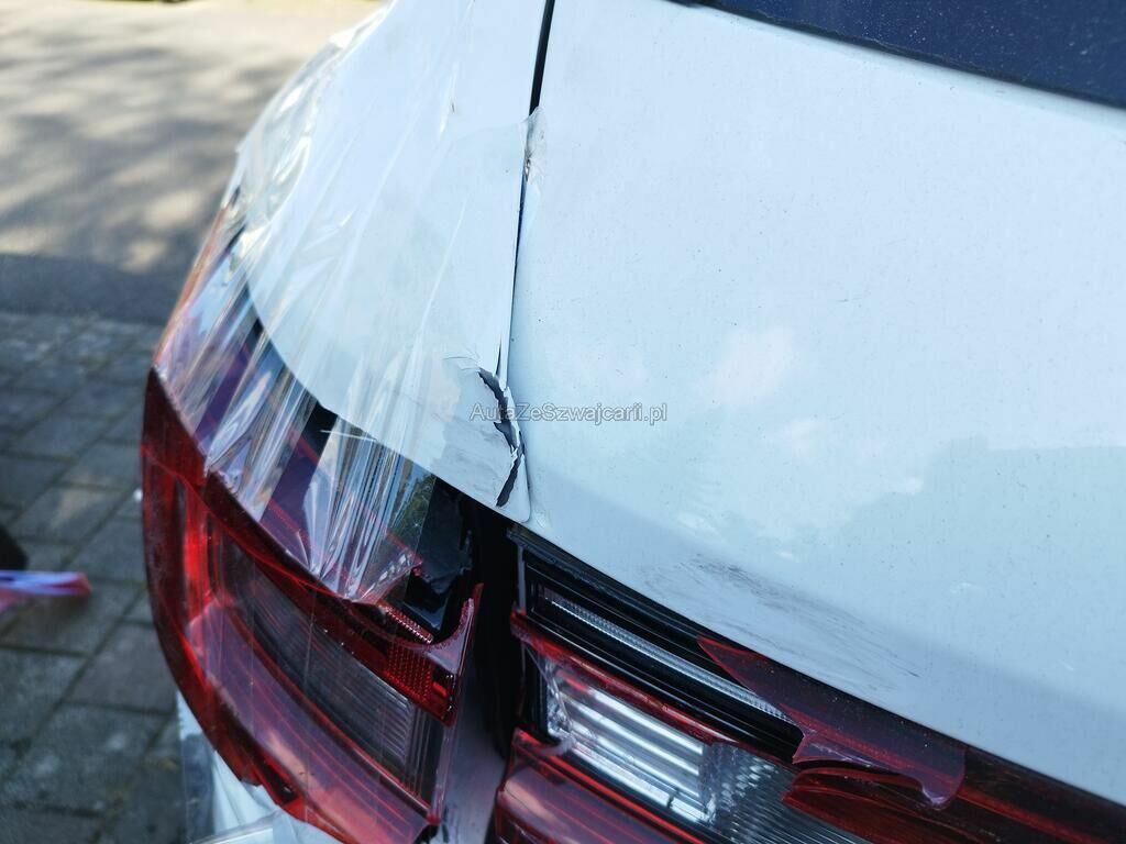 Die Stossstange hinten ist deformiert und gerissen, diverse Anbauteile sind gerissen, die Heckklappe ist deformiert, beide Heckleuchten links sind gerissen, die Seitenwand hinten links ist deformiert und gestaucht, der Querträger hinten ist deformiert, das Heckblech ist deformiert, Beschädigung der Anhängerkupplung kann nicht ausgeschlossen werden.